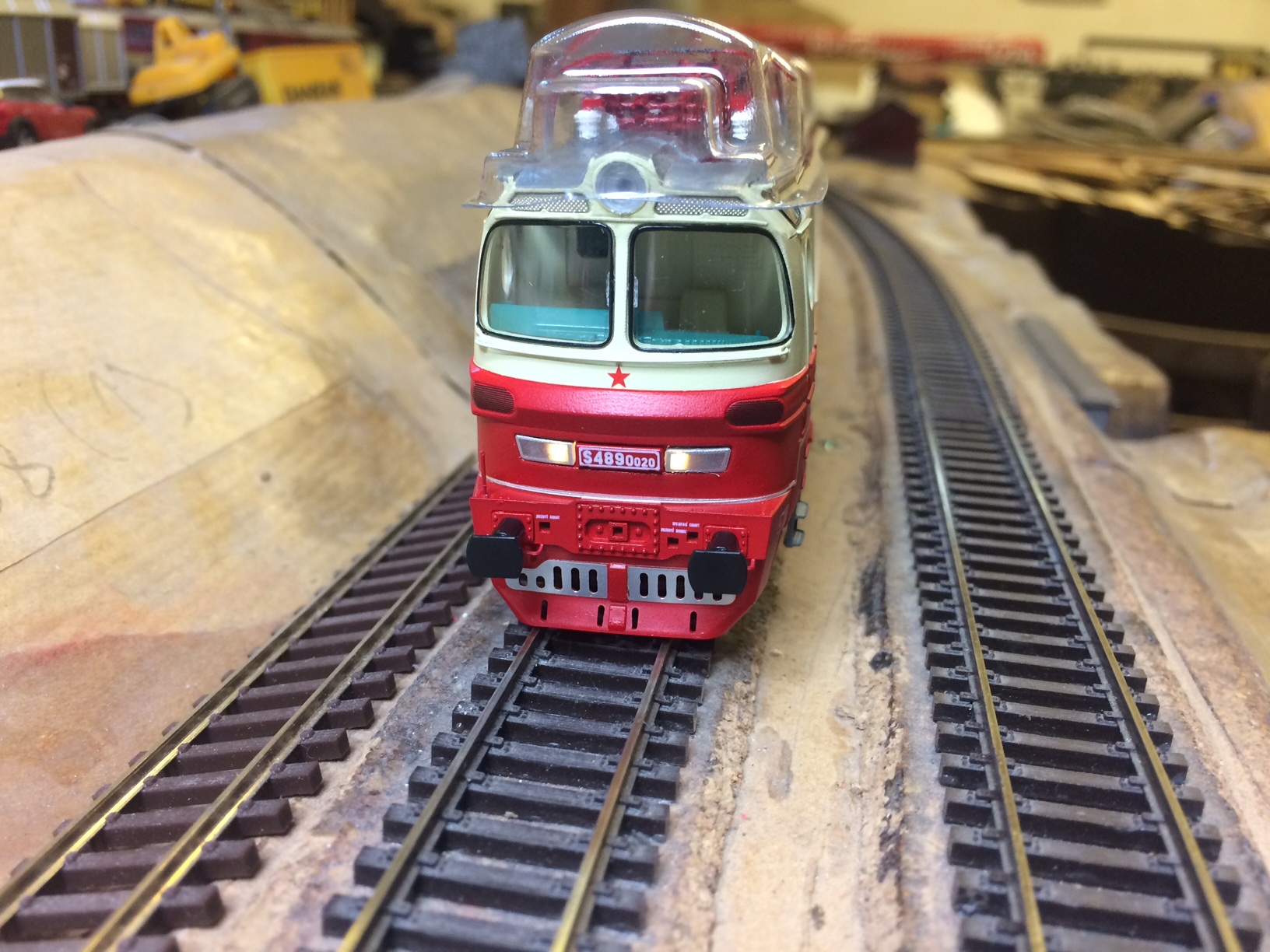 ... a to jsem zase řešil problém, za soudruhy z Německa. :oops: Sběrací botka lokomotivy si škrtne na srdcovce stejnojmené firmy (konstruktéři sběr proudu také dobře nezvládli, je třeba si to naohýbat správně) a odpálí si regulátor tak, že vše jezdí maximální rychlostí a zastavit to nejde...