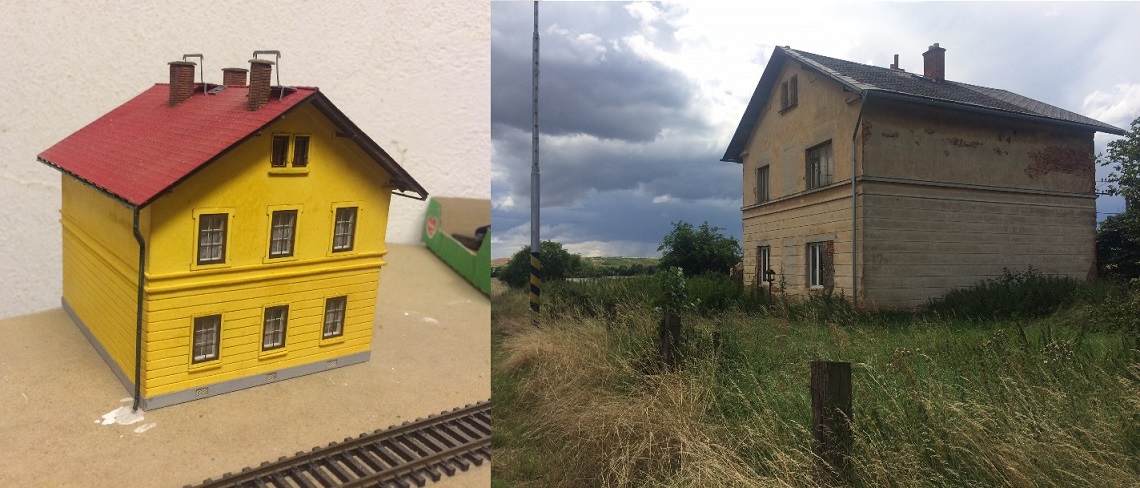 Kdybych kolem této stavby v Troubelicích nechodil, tak bych si ji nejspíše nepořídil, ani by mne nenapadlo ji použít. Její stav sice dávno neodpovídá stavebnici, už kolem ní neštěkají psi a neběhají kozy a vše zarůstá. Líbila se mi a dal jsem ji barvu, jakou mám na nádražní budově. Je to vydařená stavba od KB, že si na ni někdo vzpomněl.