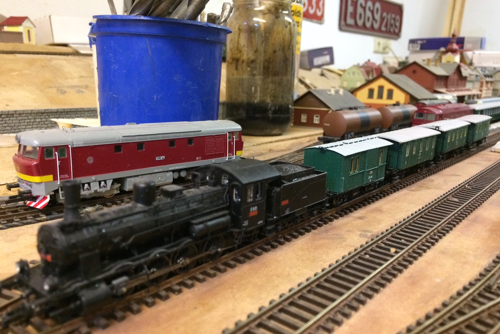 Dokončil jse přestavbu patráků od Arnolda. Přeci jen je na nich vidět, že jsou výrazně lepší a přesnější než to, co nám servíruje stále po 40-ti letech Tillig. Žasl jsem za co se na aukru prodaly ty nově tištěné čsd tilligy, to by se Arnoldy u nás zvládly asi prodat také. Natiskneme na to čsd a prodá se vše i 50 let staré :)