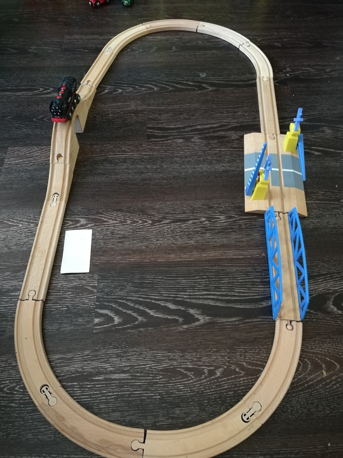 Já sice mám pro vláčky také celou místnost cca 5 x 4 m, ale v životě bych nepoužil vyjímatelné panel, který bych při běžněm provozu musel pokaždé když pojedu s vlakrpem přelézat nebo podlézat. Vyjímatelný díl bude jen pro průchod o oknu za účelem čištění nebo průchodu na zahradu. Kolejiště je podél všech čtyřech stěn.