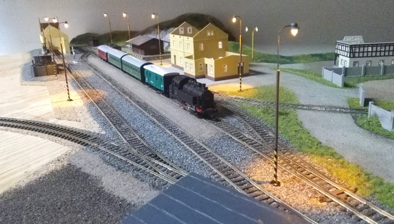 Lampy jsou z Deltaxu Všestary , napájení 12 V ss , ovládání páčkové vypínače. Dále je zprovozněna smyčka v podzemí. Ovládání v závislosti na poloze výhybky , relátko přes kontakt přestavníku přepíná dva úseky smyčky. Safra zatím jsem tomu digitálu moc nedal... :oops: