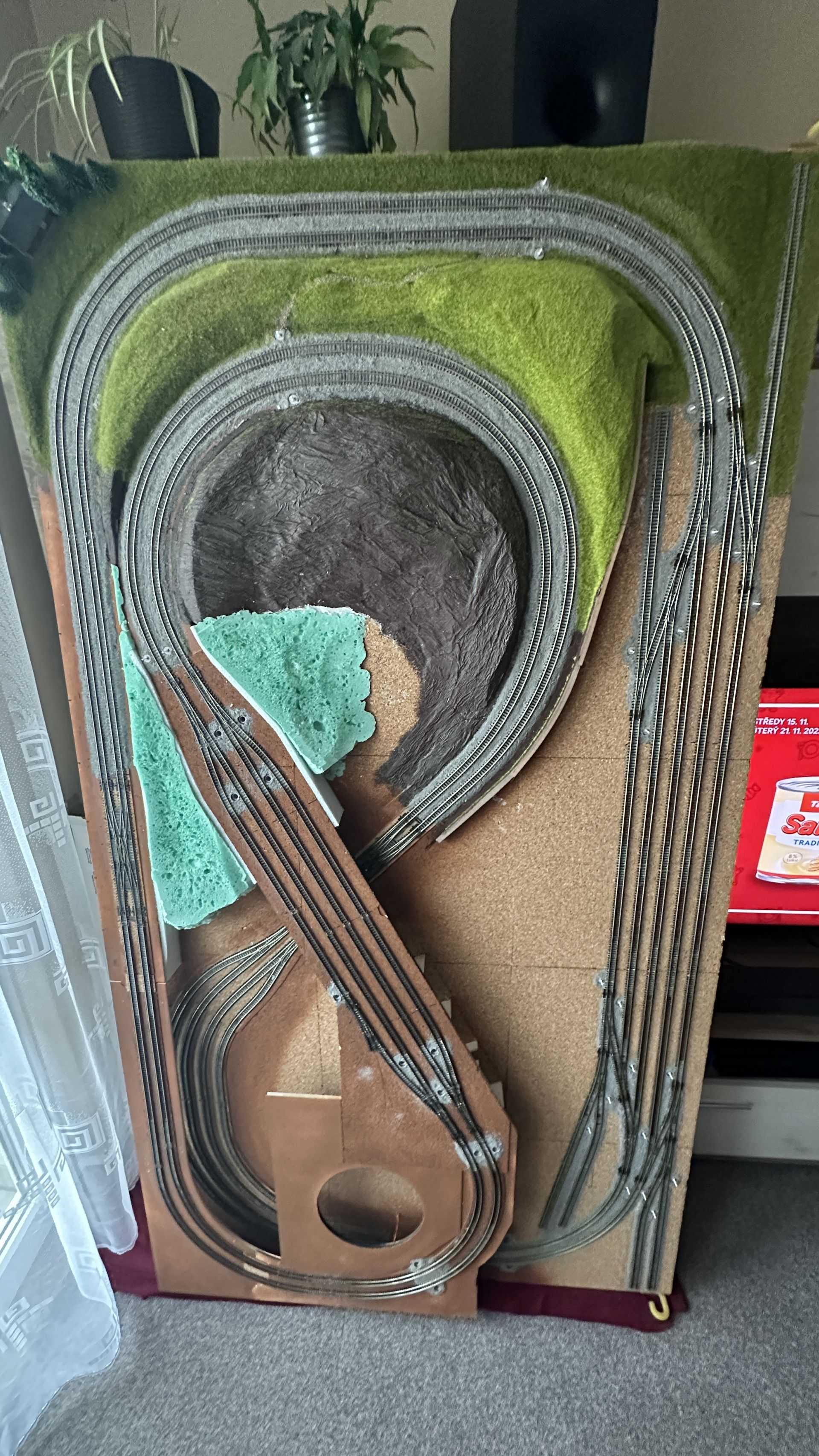 Tak opět drobná aktualizace stavu kolejiště. Jak jsem avízoval, rozhodl jsem se pro úpravy kvůli návěstidlům a ve finále jsem přidal několik kusých kolejí, dodal jsem druhou dvojitou kolejovou spojku do návrhu a k tomu jsem musel upravit podstatnou část navazujících stoupání, klesájí a celkově kolejí. Takže se z drobné rekonstrukce stala větší rekonstrukce (jak už to tak bývá). Hlavní nádraží jsem si vylaseroval na korek, takže pokládka kolejí bude skvělá. Na výhybky jsem si udělal i vrtací šablony, takže bych nemusel nic moc doměřovat.