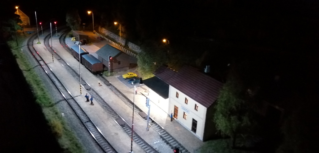 Celkový pohled a pohledy do koncové stanice. Ano, ta je částečně schovaná za lesem. Pro někoho možná škoda, já to beru jako skvělý tah Milana F. v plánku kolejiště. Ne vše musí být vidět na první pohled. Aby bylo stále co objevovat. Co myslíte, podařilo se mi ztvárnit koncovou staničku do líbivé podoby? Tak aby se nelíbila jenom mně, ale aby dělala i čest tvůrci plánu. Milanovo návrhy jsou skvělé a zaslouží si patřičného zpracování.