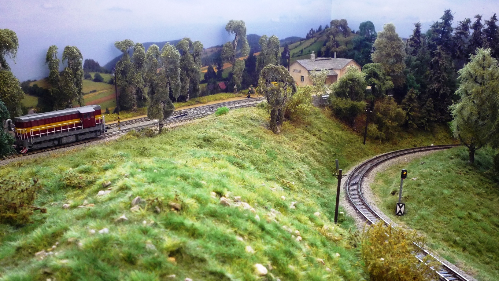 To všechno jsou jen drobnosti, a samozřejmě už i teď z toho celého kolejiště dýchá taková přirozená nenásilná pohoda. Musí být radost na té odbočující lokálce provozovat pomalou klidnou jízdu malé soupravy, pak přepřah v koncové stanici atd., nebo dole vykřižování dvou vlaků na hlavní trati.