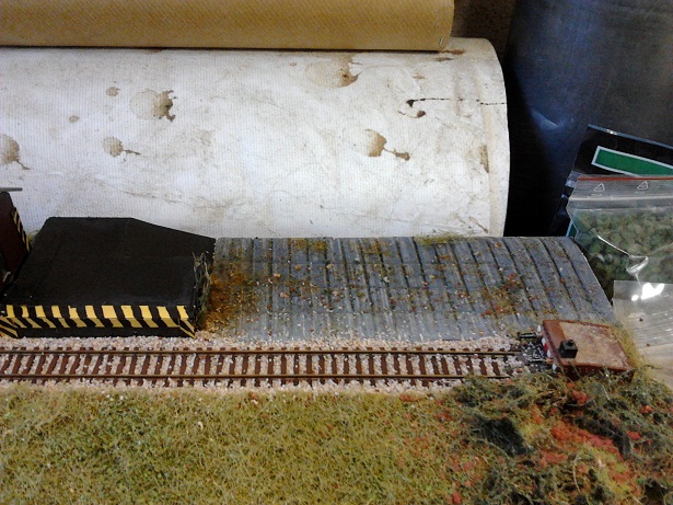 Štěrk - jestli myslíš ten bílý, který máš na dioramatu o pár stránek dříve, tak ten bych tam rozhodně nedával. Jinak k barvě podloží to co psal Tomáš (Lajblt).