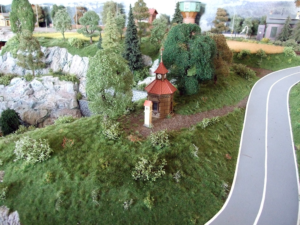 https://modelovy-svet-gene-simmonse.cz/ ... zari-2024/V červnu jsem pokračoval v úpravě terénu na kopci s kapličkou a na svahu u strážního domku, kde jsem vysázel keře od firmy MBR model a jehličnaté stromy od Model Scene a listnaté stromy z mých starých zásob.