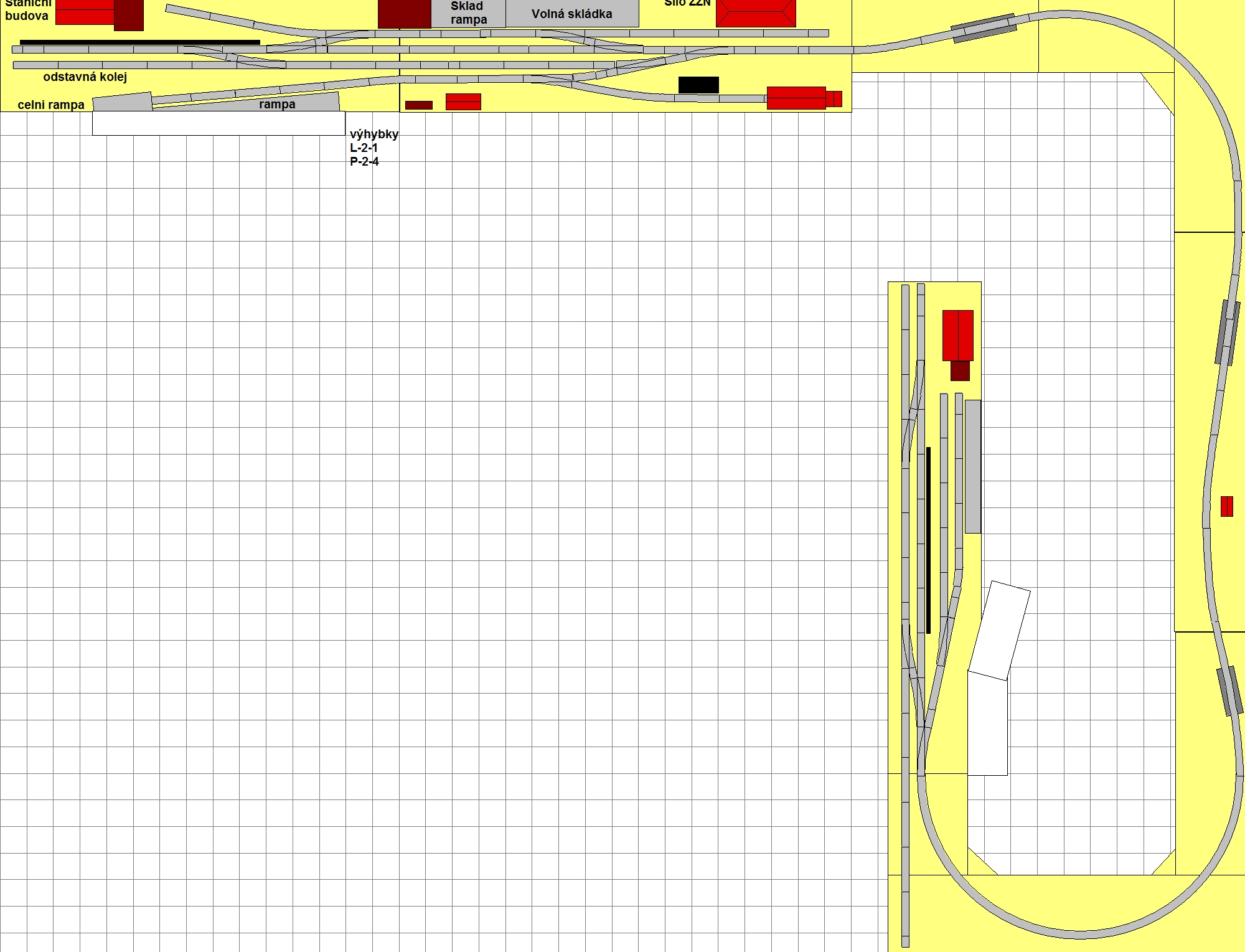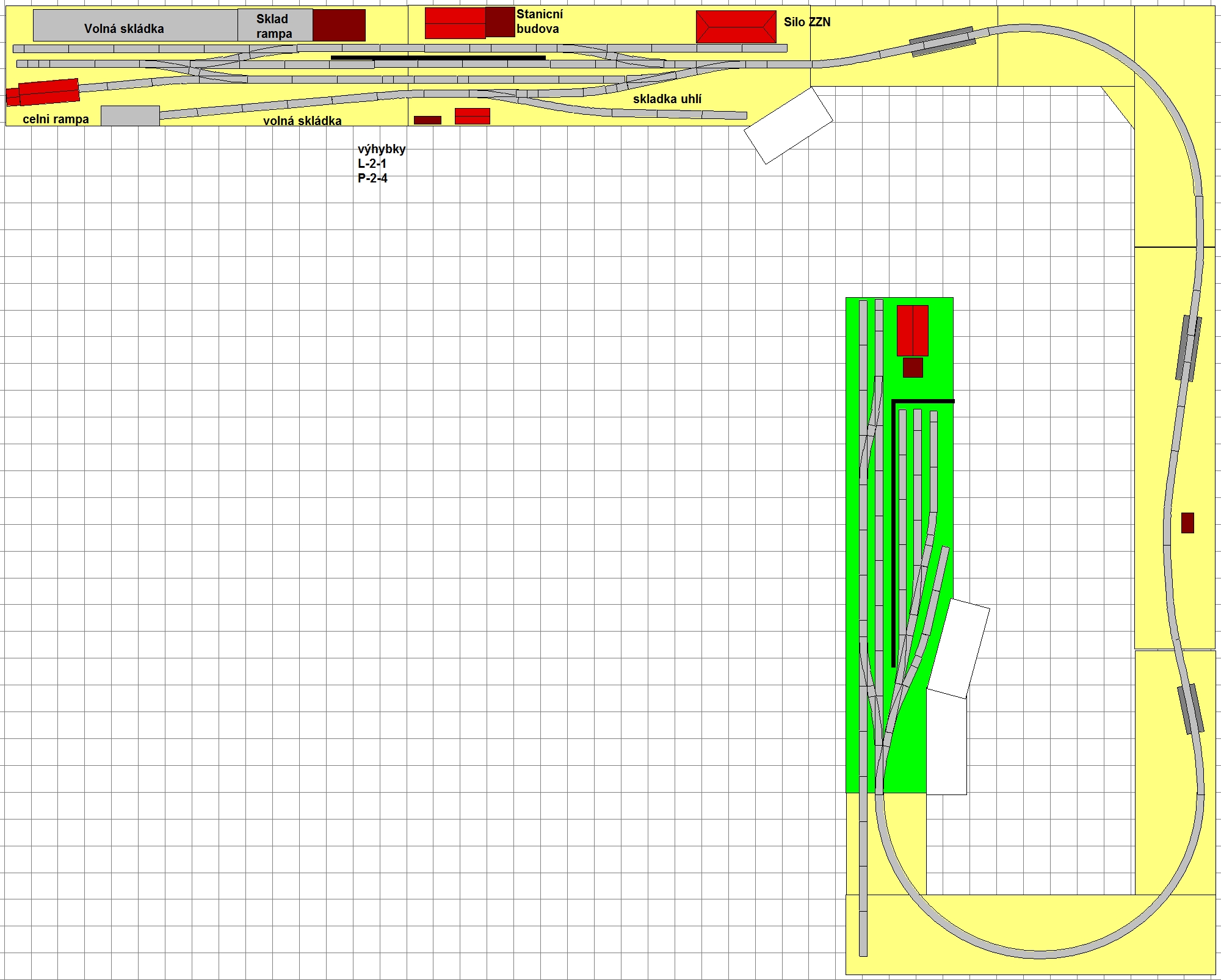 Kluci. Tobogan se mi tam dělat fakt nechce. Moje prvotní představa byla jednoduché kolejiště a nerad bych skončil u několika pater a desítek vekslí. Zatím mi pocitově vychází něco na tento způsob, byť je mi jasné, že jednodušší layout má i své záporné aspekty :wink: