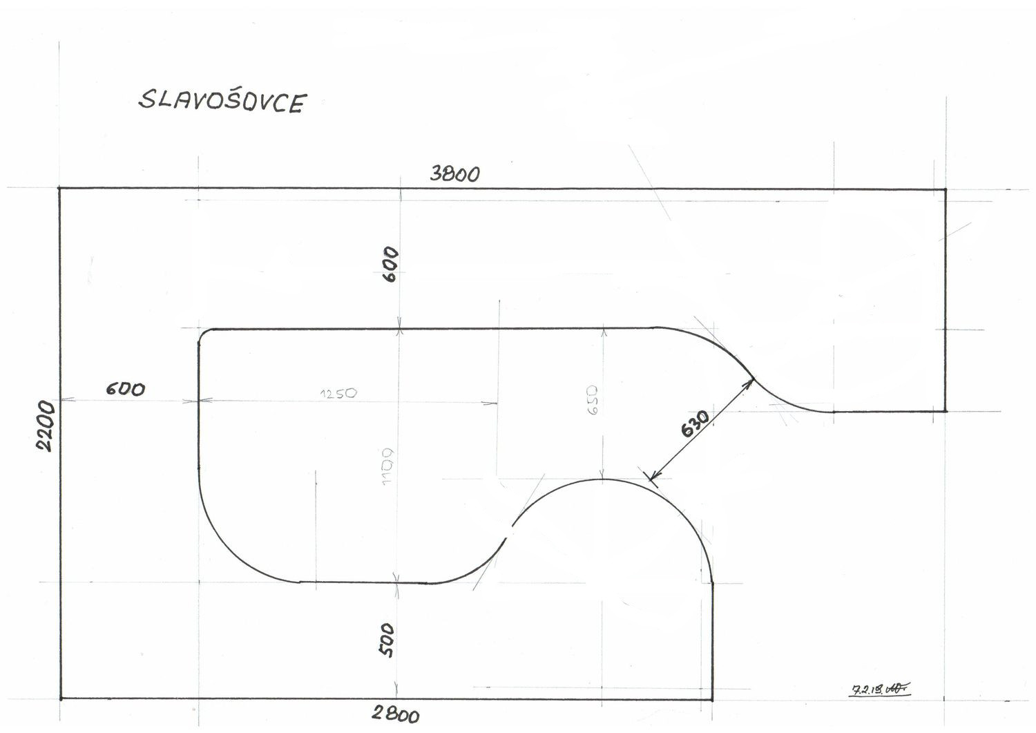 Ale oblouk není mimo místnost.Píši,že se jedná o pracovní výkres.Vratný oblouk do šířky místnosti 220,0 cm je započítán.Jen chybí horní část výkresu.