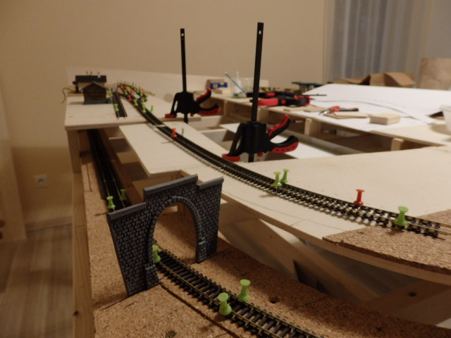 Skúšal som osadenie prestavníka MP1 a je to OK. Preglejka pod koľajami je zdvihnutá nad základným