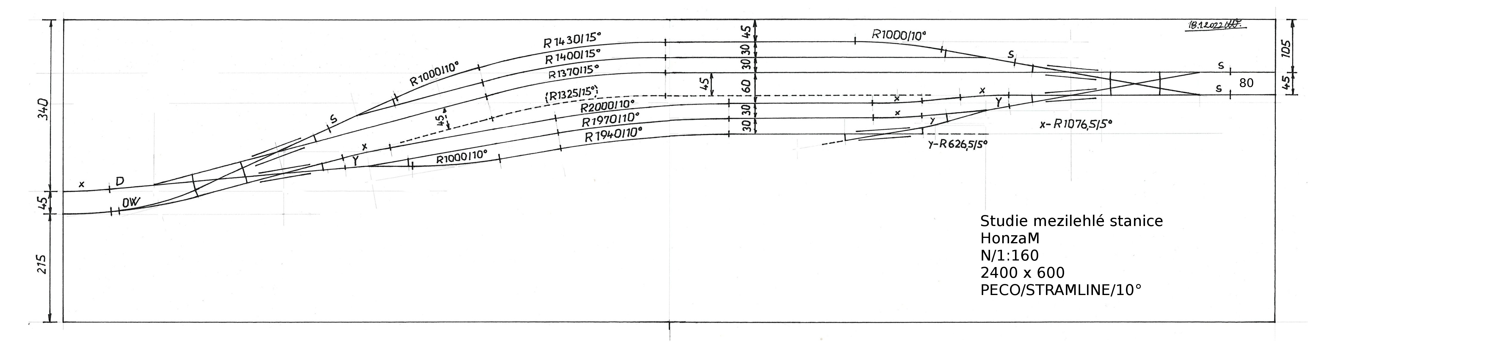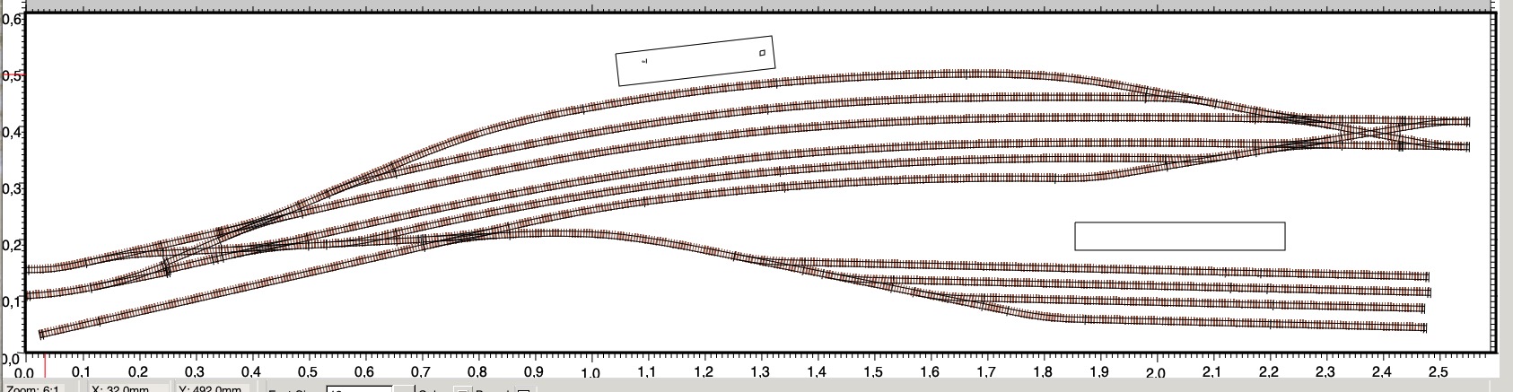 milan ferdián píše:Peťo souhlasím s tebou a nemám zájem zpochybňovat tento soft (nevzpomenu si jak se jmenuje, scram?). Využívá jej hodně lidí. Problém je v tom, že osa souběžných kolejí je 45 mm. Na ostrovní nástupiště potřebuješ 60 mm. Ten můj pracný soft s tužkou a papírem, to už má spočítané s ostrovním nástupištěm, jen mi hlásí, že tem Railjet na délku panelu 2400 mm se vejde s odřenými ušima. Levé/pravé zhlaví a nákladový obvod jsem si upravil podle sebe. Čekám co mi řekne paní geometrie.