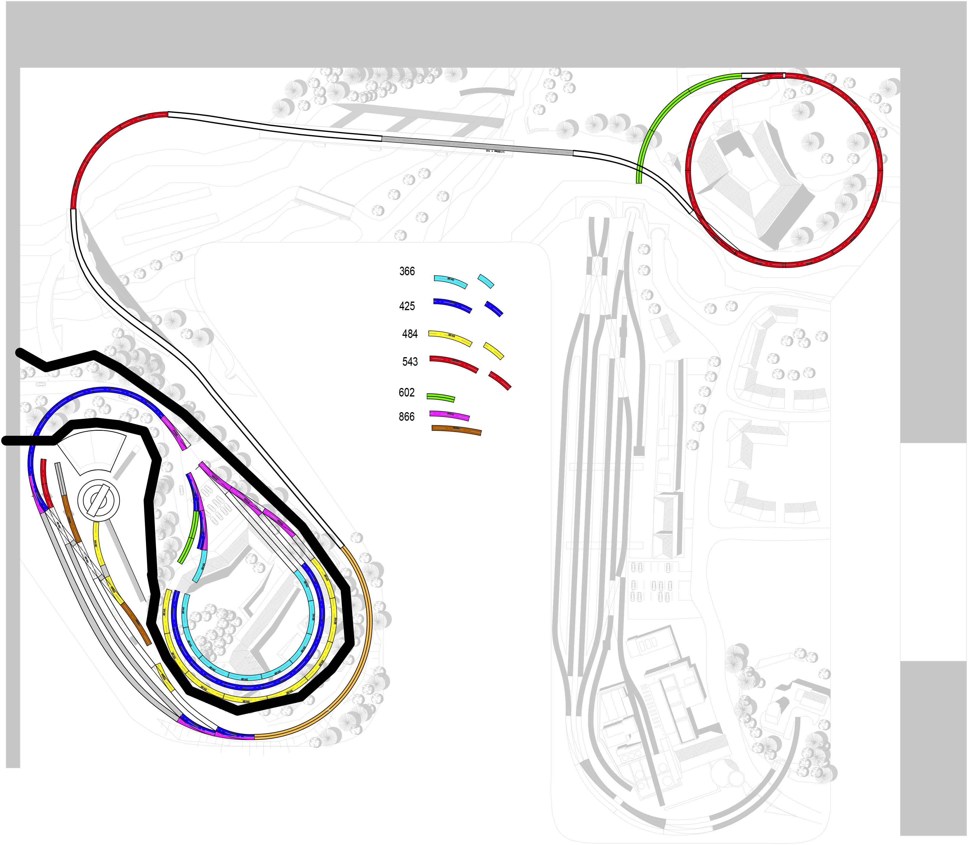Je to jen na rychlo, ta lokálka by šla trasovat mnohem hezčejc, zkoušel jsem si jak se to v H0 vleze..