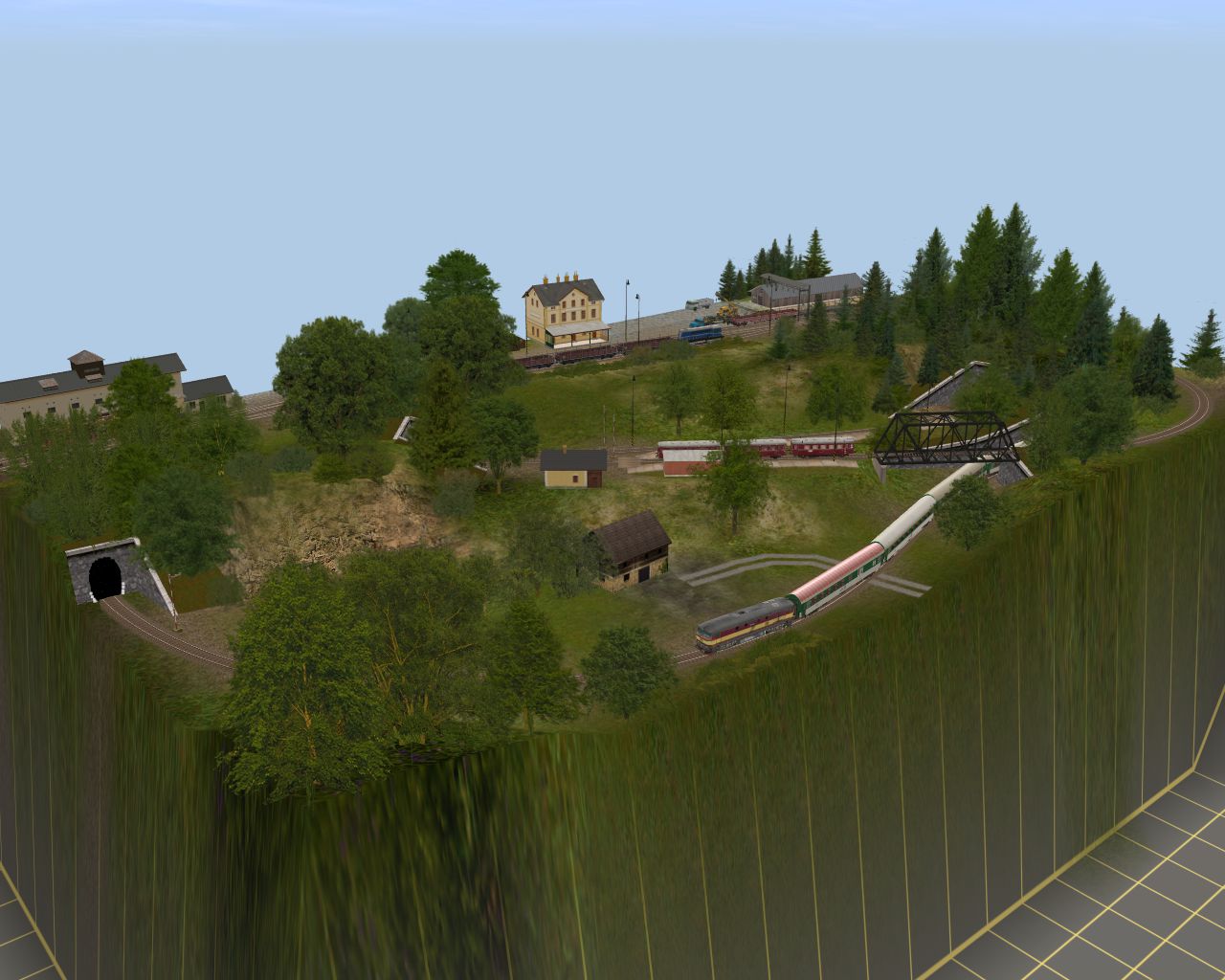 Presne kvôli tomu by som tú prvú staničku na odbočnej trati zrušil úplne - vyzerá to blbo, že hneď za odbočkou by bola malá výhybňa bez akéhokoľvek kúsku trate medzitým... Úplne by tam postačila len tá odvratná koľaj a skrytá výhybňa v tuneli...