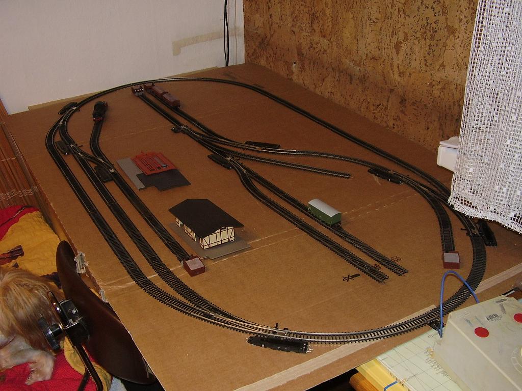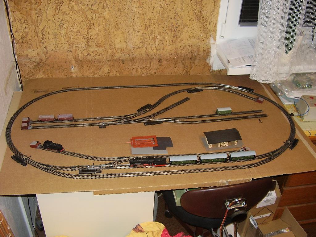 Na Milanovy knížky zatím stále čekám, tak jsem večer zkusil na improvizované náhražce panelu alespoň rozložení kolejí pro "Zálesí" v reálu.