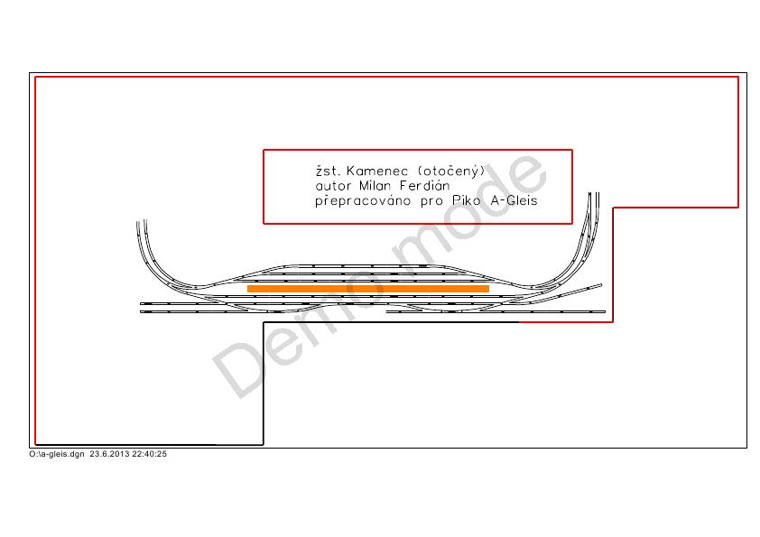 Tak jsem zkusil (místo práce, ach jo) nakreslit nádraží Kamenec Milana Ferdiána v Piku A-Gleis a umístit jej do možné užitné plochy.