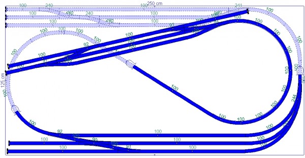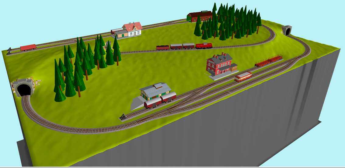 No a kdybys vynechal i ten skryťák, tak ti vznikne trať odněkud někam, kde si s jednou nebo dvěma mašinkami a šesti nebo osmi vagónky parádně zajezdíš podle jízdního řádu včetně odpovídajícího posunu při přejíždění na opačný konec vlaku v obou stanicích a napravo dole můžeš místo oblouku do tunelu prozatím zřídit šturc, z něhož v dalším vývoji - až na to budeš mít místo a peníze a jestli mezitím neztratíš elán - později můžeš pokračovat návazností na budoucí sousední modul.