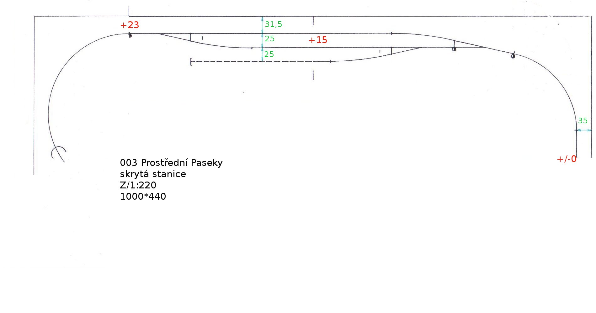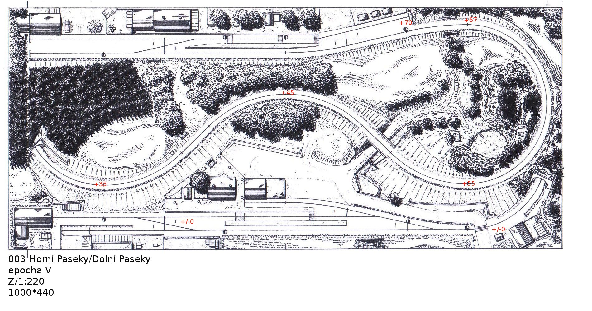Do spodní stanice bych do levého dolního rohu přidal ještě jednu kusou kolej k naznačení nějaké pidivlečky, která ti zdůvodní, proč dole vykládáš něco, co nahoře nakládáš - nahoře můžeš nakládat třeba dřevo pro pilu dole nebo třeba brambory do zetek pro sklad místního hodpodářského družstva apod.