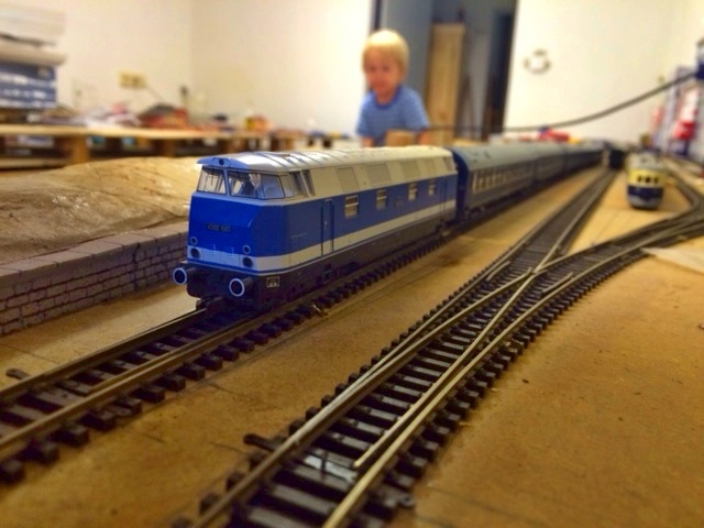 Stejně tak modrá V180, kterou jsem měl v H0 jako malý kluk, takže jsem si koupil tento skládací model tuším TT clubu, převážně mi sloužící jako první testovací lokomotiva, na které není co urazit.