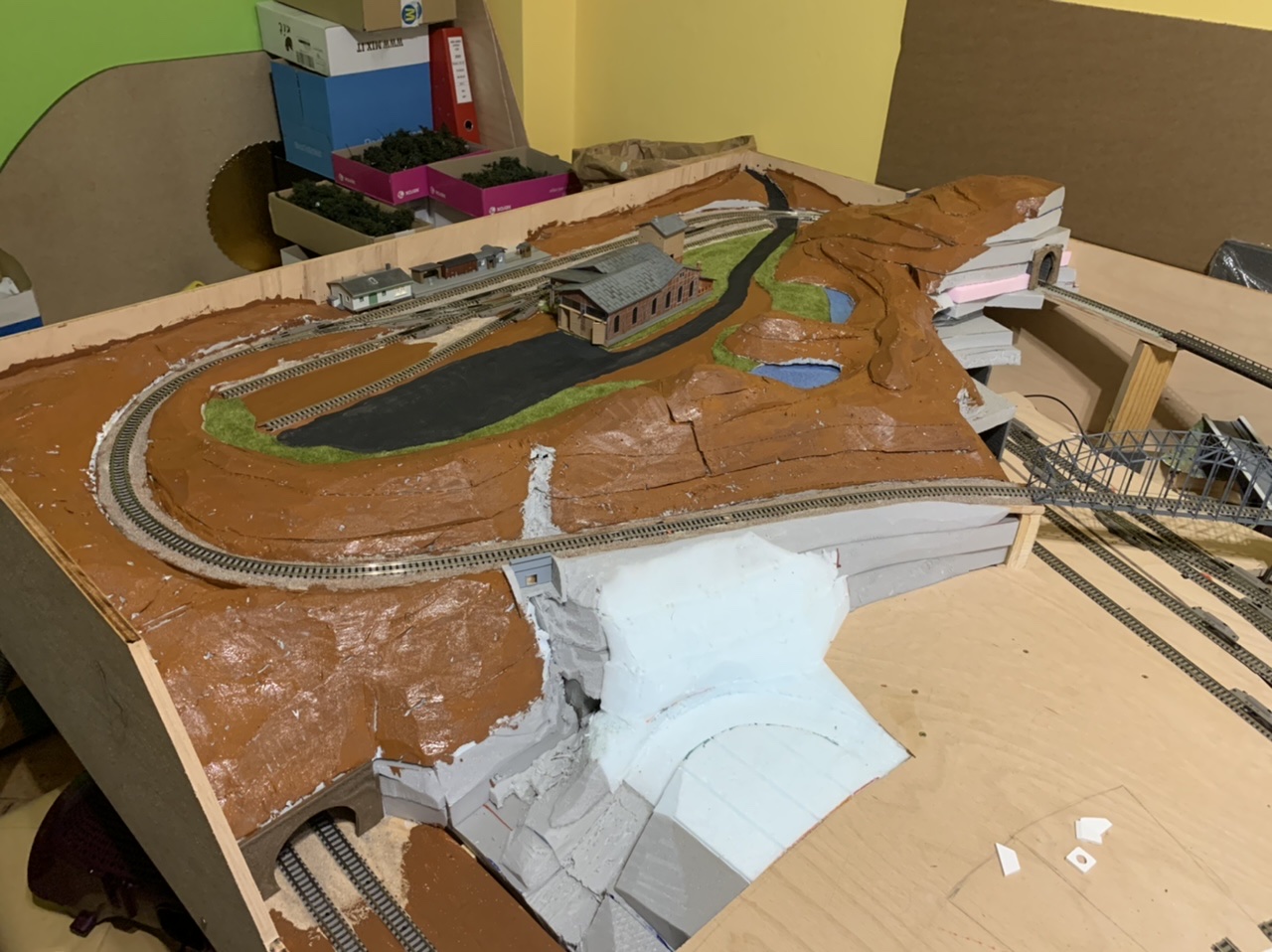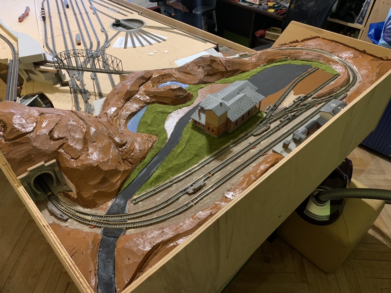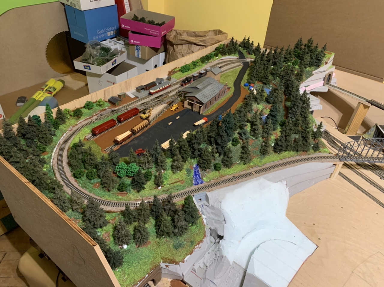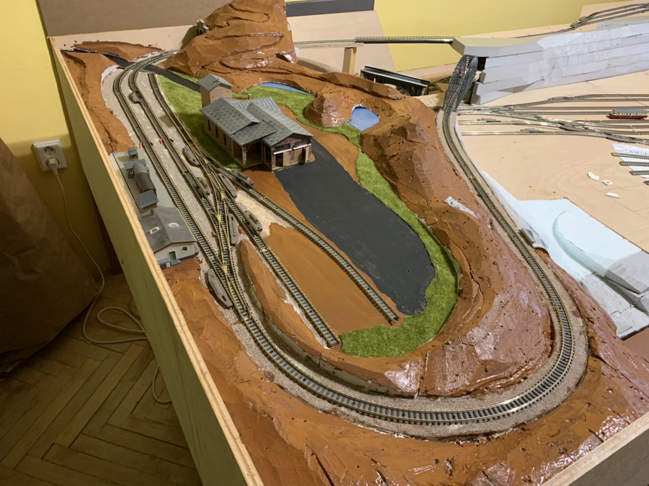 dovolená skončila a část “pila” je velmi nahrubo a tímpádem na dlouho “hotová”, takže se s teréno-tvorbou přesunu na opačný kraj kolejiště...