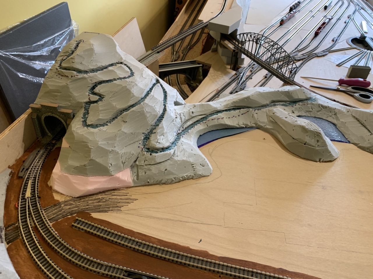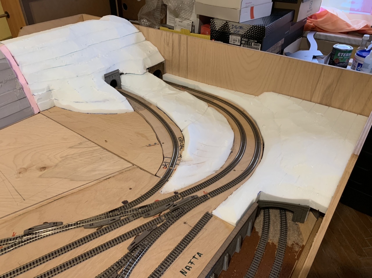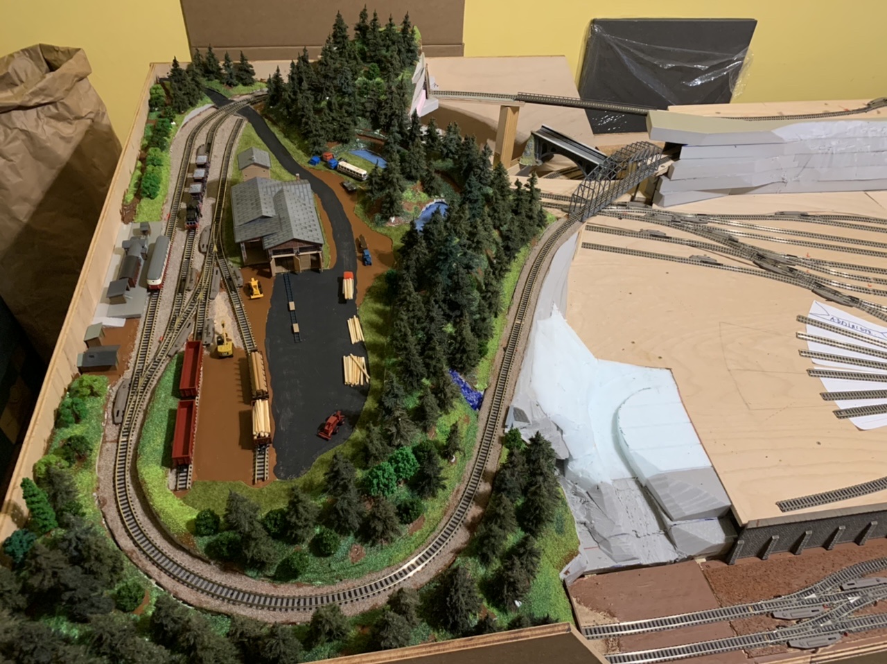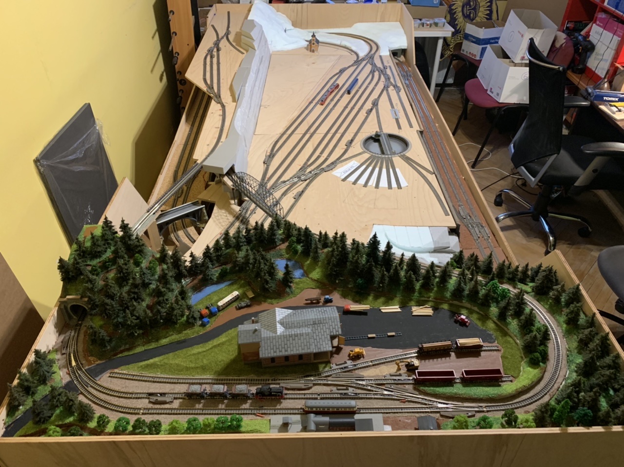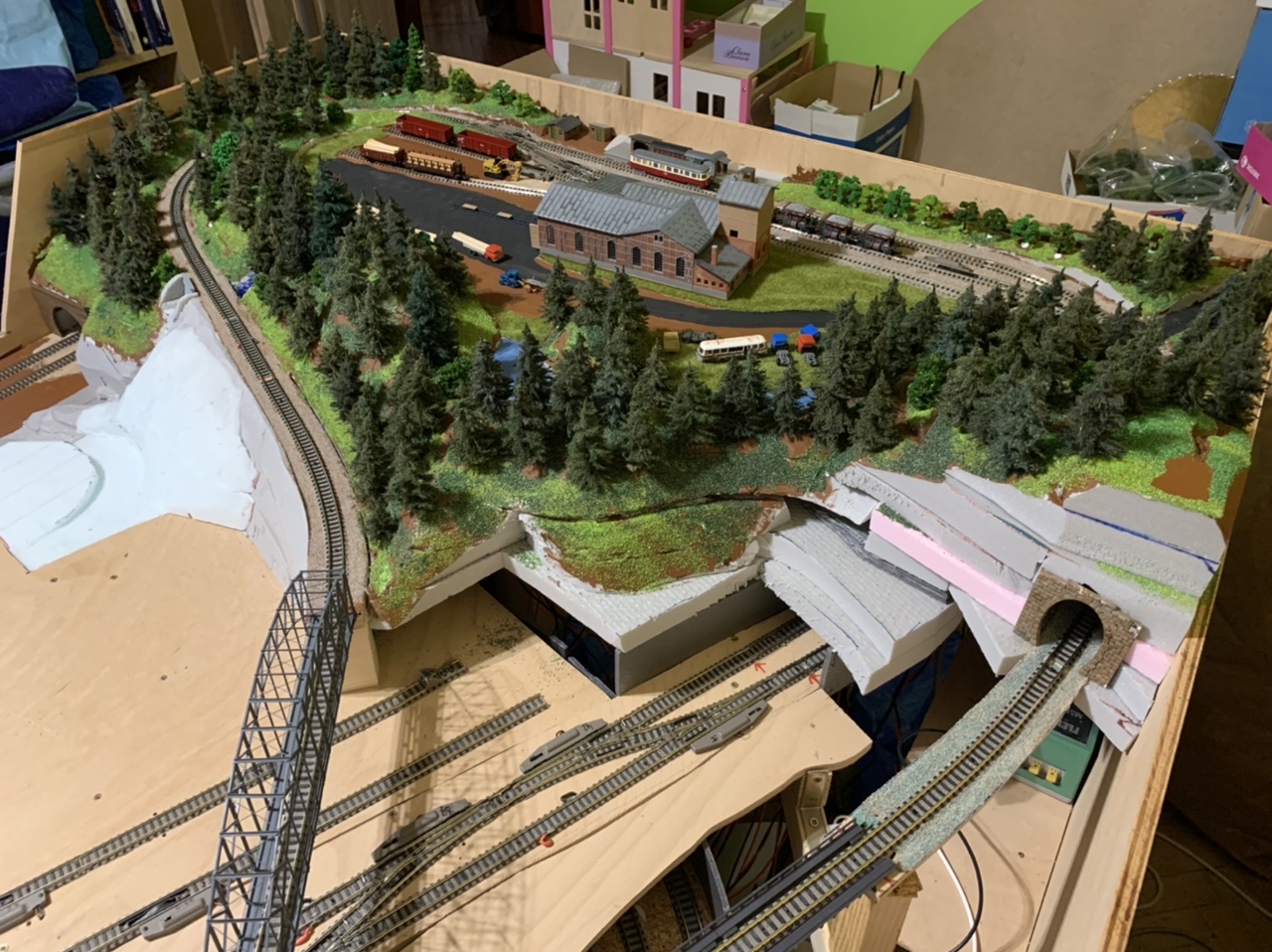 dovolená skončila a část “pila” je velmi nahrubo a tímpádem na dlouho “hotová”, takže se s teréno-tvorbou přesunu na opačný kraj kolejiště...