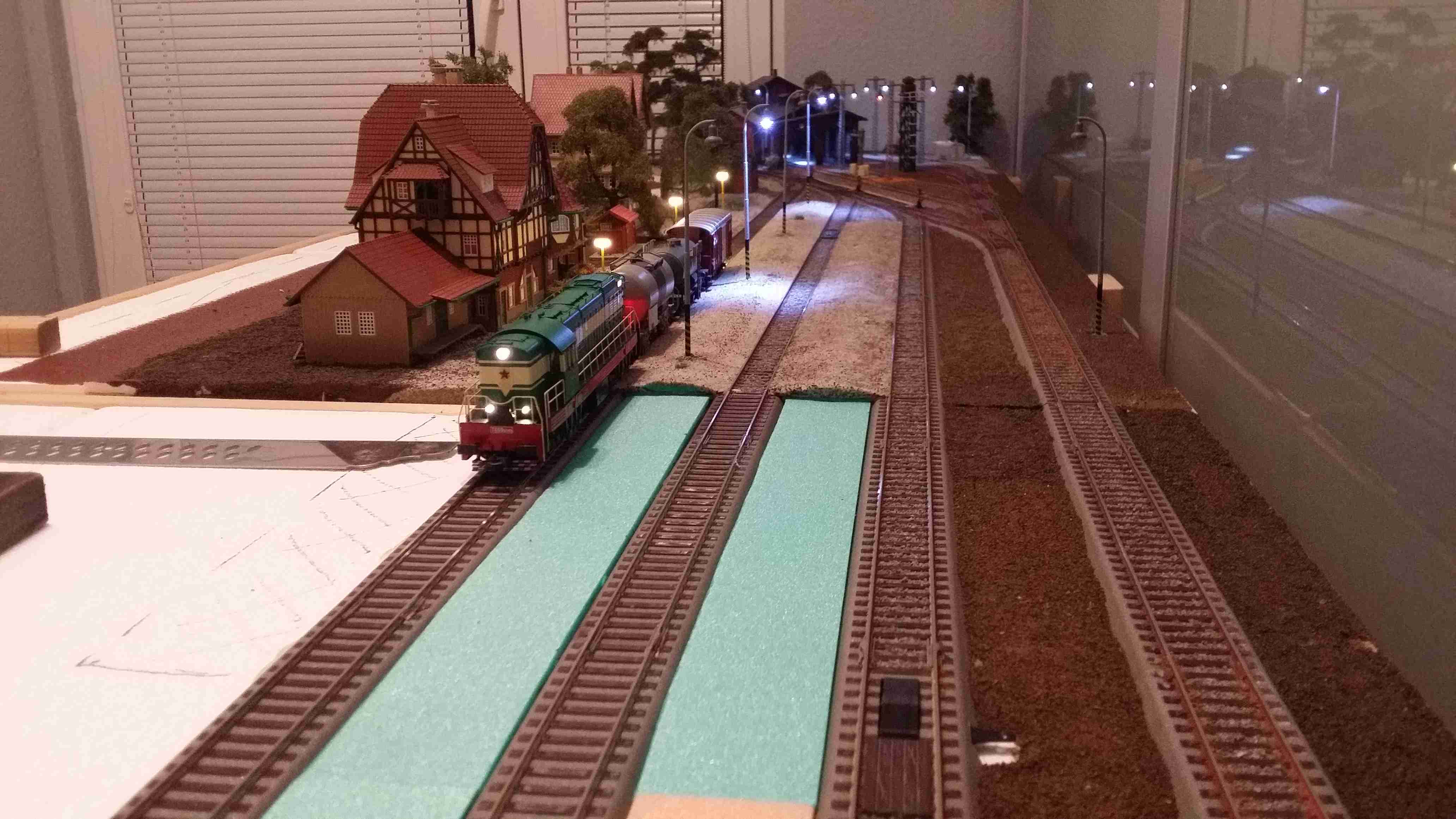 Tak jsem zadrátoval druhou část zhlaví a konečně po roce a půl jsem si zaposunoval přes celé nádraží .....odnes to čmelda konečně jsem jej trochu protáhnul a zvuk se line místností.....mám radost, že přechody mezi segmenty jsou plynulé a není žádný problém sice mne ještě čeká práce na kostele, ale zima se blíží je čas modelworku.Je to divný jak je druhý modul holý :D bez štěrky patiny rozpojovač od Roco maká jak má sice to jsou šupy, ale vágon to rozpojí bezvadně. Omluvte sniženou kvalitu fota