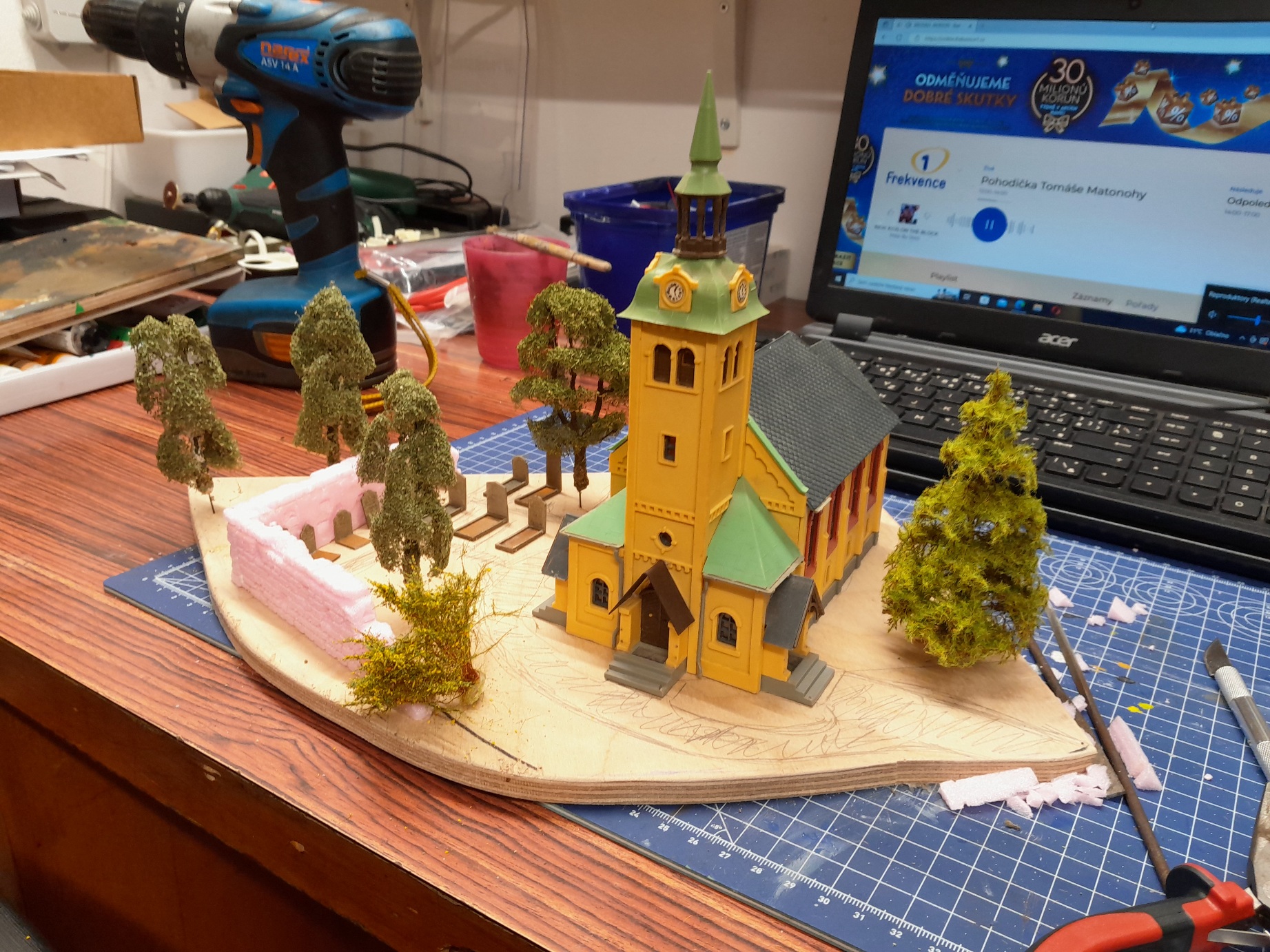 Pesina je zářez pajkou. S tím křížem máš pravdu. Kopec zdaleka není hotov. Ještě se budou dělat sádrové skály. Tak udělám jeden vycnelek na kriz jak píšeš.