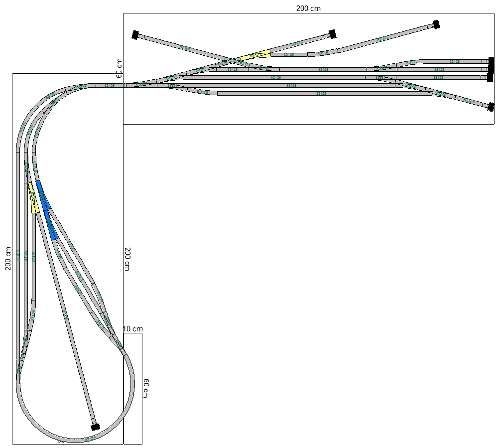 Smyčka by mohla být i samostaný prvek, popř. s odstavnými kolejemi jako SN. Taktéž trať mezi segmenty může být jako samostatné prvky, u kterých bych rád použil jakousi variabilitu (domácí moduly - i když této se těžko dosahuje, nechci se jí tedy držet striktně). Nebo zde existuje možnost postavit trať na stávajících panelech, ale pak mi nevychází slušná výška kolejí nad SN, pokud bych chtěl kolejiště byť jen na dvě patra.