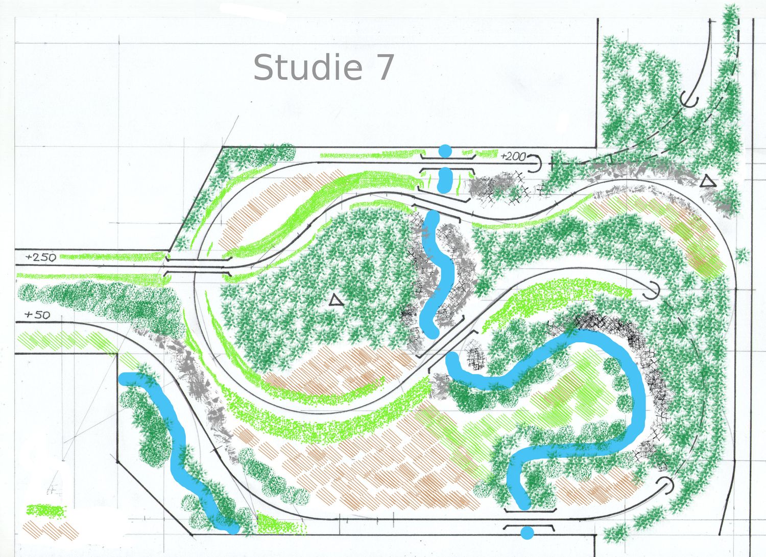 Pokud se nebudou nadjíždět trati může být stoupání menžší, vyjde i menší výška ale nNabízí se posunout oblouk dvoukoljeky tak aby šikmou hranu otáčecího dílu přecházela kolmo. Řeku bych nechal +- ve stejné pozici, jen oblouk mezi mosty přisunout blíž k okraji, na hraně kolejiště mít jen nízký břeh a vznikne i místo pro dva mosty dvoukolejky.