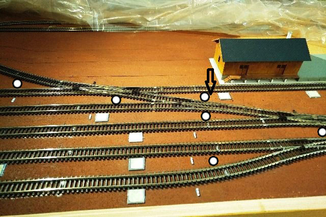 Na svém kolejišti stavím námezníky do místa, kde se právě stýkají šablonky průjezdných průřezů pro přímou a obloukovou kolej (mám pouze přímé výhybky). Potom vím, že se v případě dlouhé soupravy můžu spolehnout na to, že pokud vozidla nepřesahují přes námezník, nic do nich na sousední koleji nenabourá. A taky v tom místě mám rozhraní kolejových obvodů, tj. právě v tom místě je přerušená jedna kolejnice.