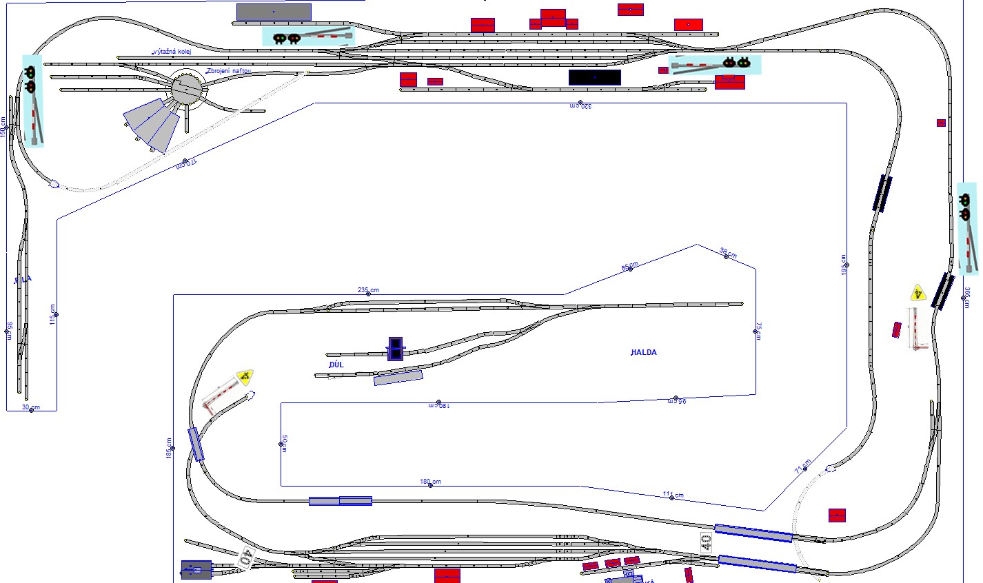 Pokud si nechceš komplikovat život zabezpečovacím zařízením, zjednodušil jsem návěstidla v odbočné stanici takhle:
