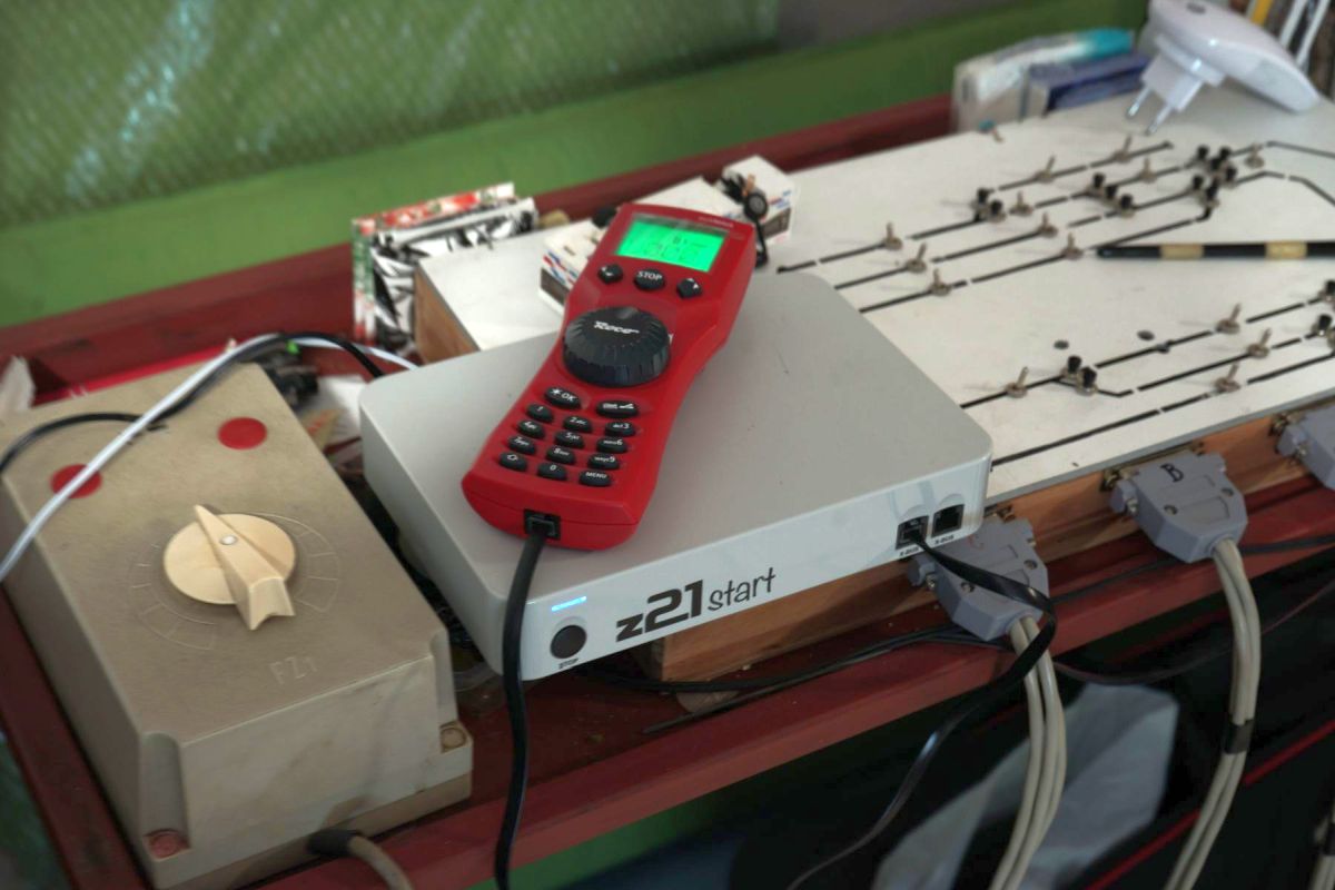 Když před nedávnem slovo dalo slovo, a s jedním kamarádem, začínajícím modelářem, který ale zatím nemá kolejiště, ale má nějaké modely v digitálu a ve zvuku, jsme se dohodli že vyzkoušíme provoz jeho strojů na našem kolejišti... Tak jsem dopravil svou centrálu Z 21 start a jednu svou loko v digitálu abych to mohl připravovat než dorazí, a trochu poupravil přívod napájení od trafa k ovládacímu pultu tak aby se dala připojit centrála a přepínat jestli do kolejí půjde analogové napájení nebo to digitální... S ohledem na analogový základ kolejiště a tudíž i odpojitelné úseky (většina oboukolejnicově) nejen na nádraží, ani nebylo nutné sundávat lokomotivy zrovna nepoužívaného napájení. Kamarád byl spokojený, já u toho vyzkoušel jednu z dalších možností provozu vozidel i průjezdnost nezkrácených rychlíkových vozů... :)