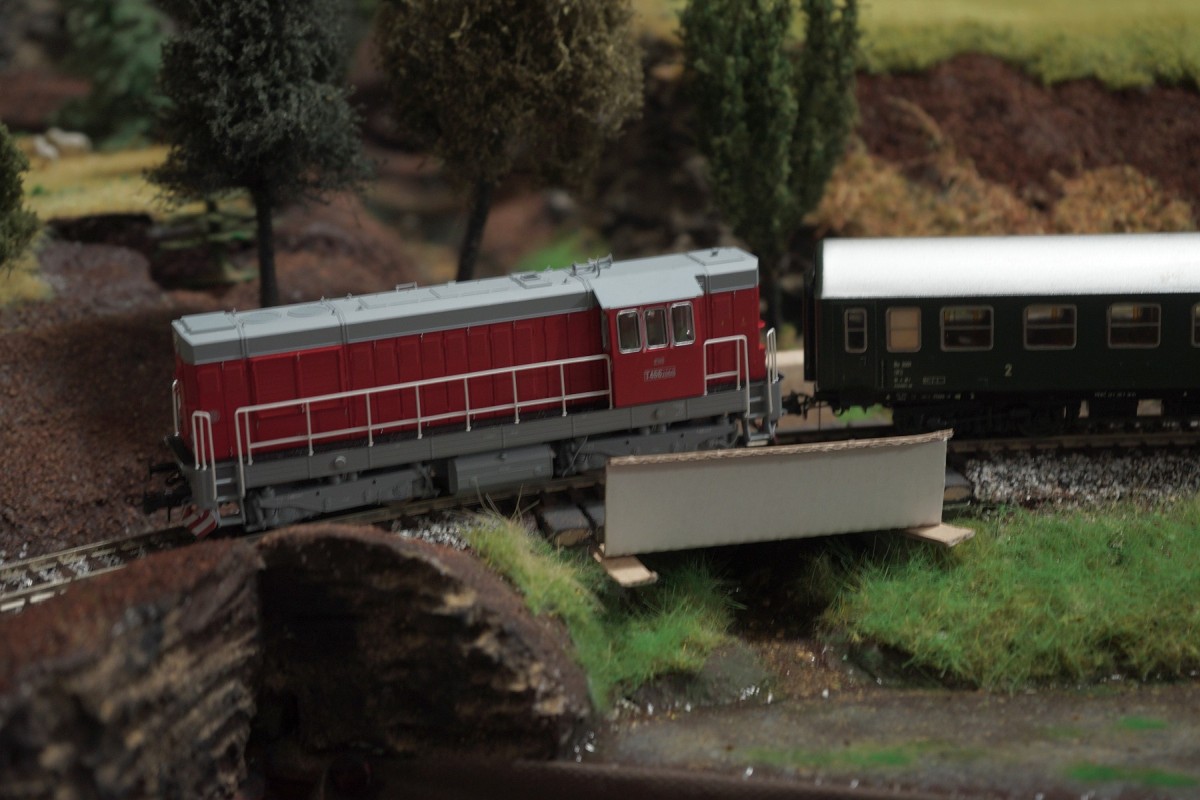A do nového vozového parku klub pořídil T466.2050, soukromý dopravce dojel s T435.0105 a sebou přitáhl pár nákladních vozů a pro oživení osobní dopravy i pár pater (konečně se mi dostaly do ruky pořádná vozidla pro vyzkoušení průjezdného profilu v obloucích, tunelech... takže teď tam po pár dalších drobných úpravách projede snad už vše ostatní, teda krom toho co potřebuje elektrifikovanou trať... :D ). Vozidla soukromého dopravce asi na kolejišti nebudou jezdit o věřejných akcích pokud se nedořeší ochrana proti vichřici... mlátit to nemůžu, neposlouchá to a rodiče si to vychovat často asi ani neumí, takže se k tomu chovají hůř než kdyby to pařilo jim... :twisted: