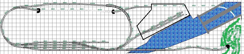 Když si uvědomíš šířku řeky (kanálu), měl bys ji míst pomalu přes celé kolejiště kde by měl být prostor pro otočení lodí (minimálně u přístavu).