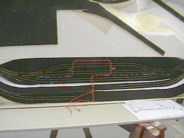 Koleje jsem pokládal bez vodičů. Ty jsou připájeny až následně. V nádraží to nevadí, protože všechny zkončí pod štěrkem a zásypem. Chybí položit jen kolej k remíze. Tu mohu položit až s instalací popelové a montážní jámy.