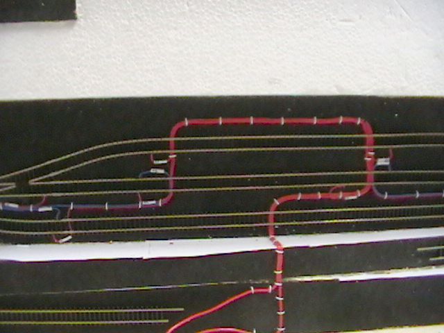 Zespoda je drátovačka "začištěna" pomocí plastových instalačních lišt vlepených do žlábků vyříznutých do polystyrenu. Vrchní část je oblast pod hlavním nádražím, to na zadrátování teprve čeká.