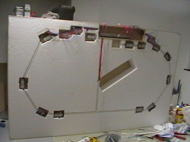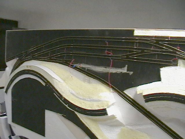Nyní mně čeká rozmístění přestavníků a jejich mechanické odzkoušení a dále zadrátování této úrovně a ostré jízdní zkoušky. Teprve pak mohu začít lepit vršek. Až bude hotov i ten, bude nutno instalovat kulisu a dokončit chybějící úrovně terénu s tunely.