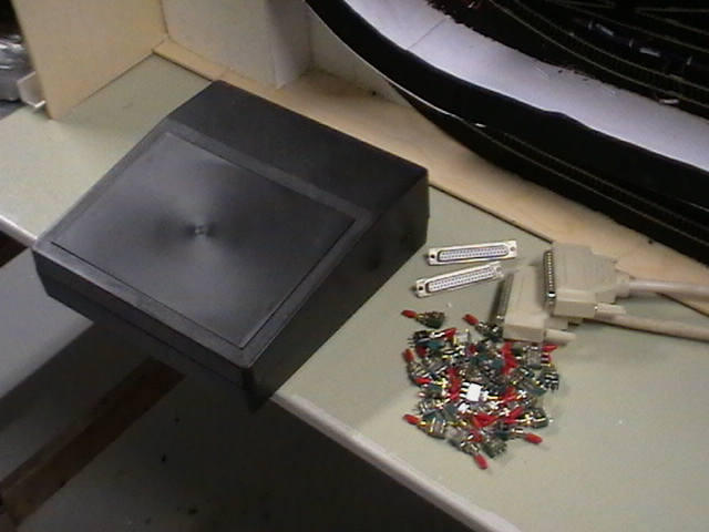 Na ovládání celého kolejiště ryze analogově postačí takovýto pultík. Na výhybky a spínání úseků použiju páčkové přepínače. Na propojení s kolejištěm bude použit 37-mi pólový kabel, který jsem doma vyštrachal. Jen nevím, zdali mi bude 37 pinů stačit. Když tak ještě přidám další 15-ti pin a budou hold kabely dva.