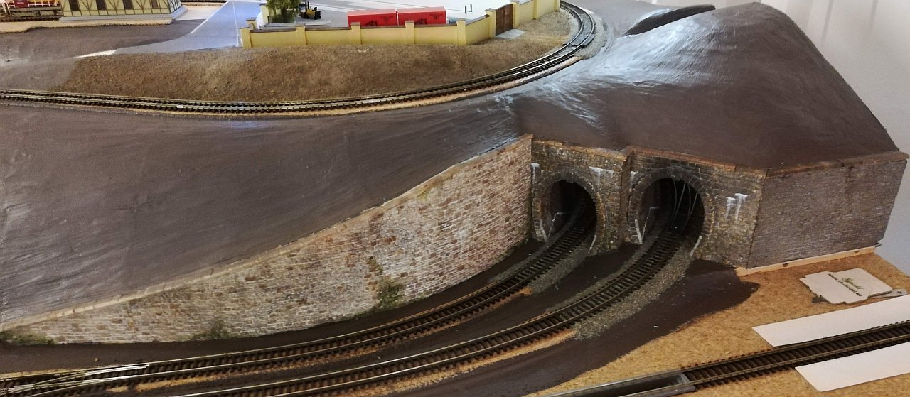 Vojtěch Vorel: Chvíli jsem nad tvým návrhem spekuloval. Je tu jedno ale. Ty výhybka je flexibilní a je sestavena mírně do oblouku. To znamená, že tam trojcestná výhybka bez úprav nesedne. Asi by to šlo, ale nechám to tak jak to je. Teď mi dělají starosti odvodňovací žlaby nad opěrnými zdmi. Jak na to v modelu. Řešil to někdo?