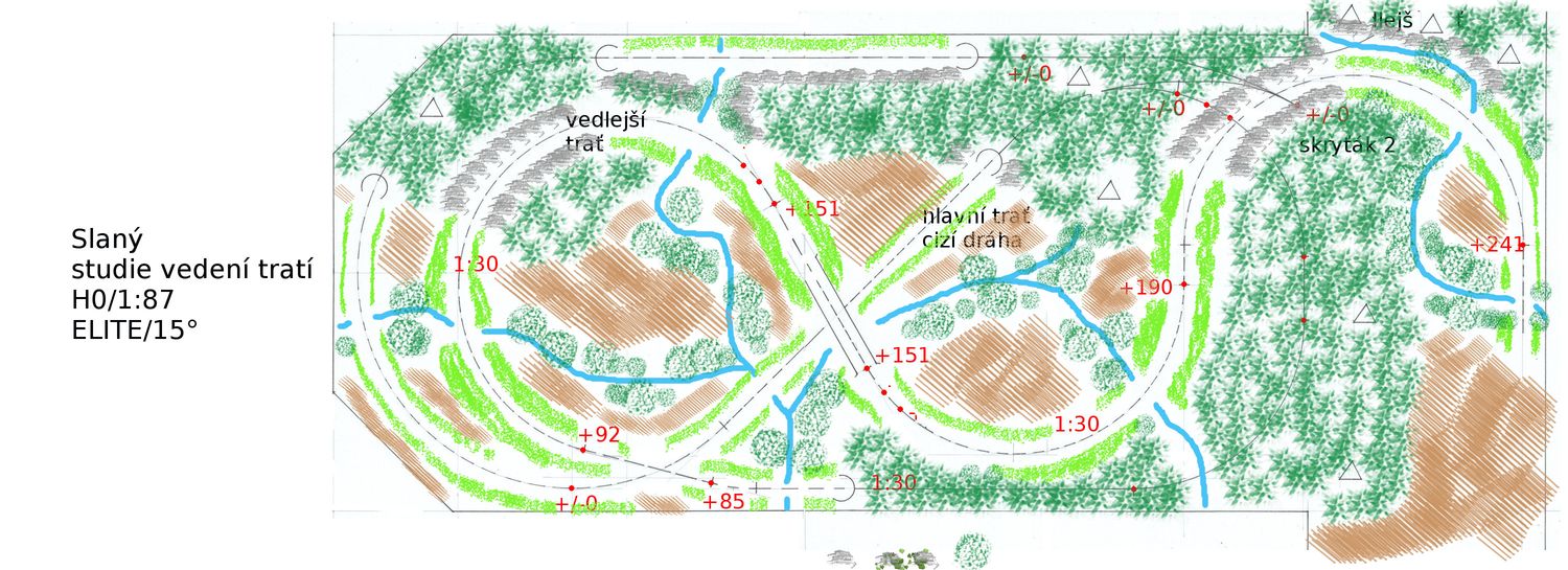 HonzaM píše:Ještě k mé představě - rozhodně bych trval na druhé stanici ve viditelné části, která by sloužila jako odbočná - odbočení vedlejší trati uprostřed hlavní trati jen s odvratem bych určitě nevolil, na hlavní trati mezi stanicemi bych udělal malé skryté nádraží použitelné i jako výhybna, aby vlak nedosáhl druhého nádraží pŕíliš brzy. Mohl by se tady vystřídat s jiným, v tomtéž nebo opačném směru. Jak ale píšu, jde především o představu a přání majitele.