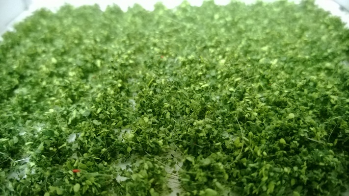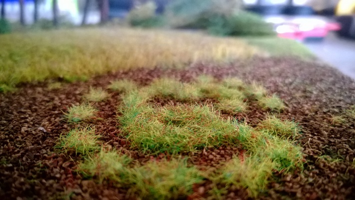 Tak vlak RoLa bude asi tahat bastard CD Cargo od Kuehna :) Jinak mi prisla flokovacka, tak jsem si ji hned na necisto vyzkousel. Nechtel jsem ale rozbalovat tu novou travu od MiniNatur, tak jsem pouzil tu starou, kde je spousta zlute, hnede, cervene a nevim jeste jakych barev, takze nic moc :D (obr.1). Sel jsem do obchodu se podivat, jestli nemaji nejakou pouzitelnejsi na zkousky, ale bohuzel Temze byla proti :D A ta svine porad stoupa :D (obr.2).