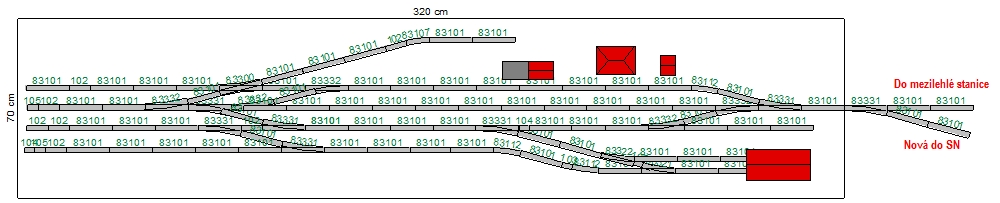 Přestavba asi takto: Díl 1 ( SN ) pryč , díl 2 protáhnout až ke zdi a tím by se protáhly koleje a hlavní nádraží by zas bylo koncové , díl 3 a 4 nechat , díl 5 protáhnout mezilehlou a udělat z ní odbočnou - jedna trať (tunelem) do SN a druhá do malé koncové , díl 6 udělat vícepatrový - tobogan do SN a nahoře průmyslový aerál ale s vlečkou z malé koncové. Provoz jak popisuješ. Mezi velkou koncovou přes odbočnou ( původně mezilehlou ) do malé koncové by jezdily krátké manipuláky , motorové osobní soupravy a lokálkový osobák. Mezi velkou koncovou přes odbočnou do SN cokoliv.