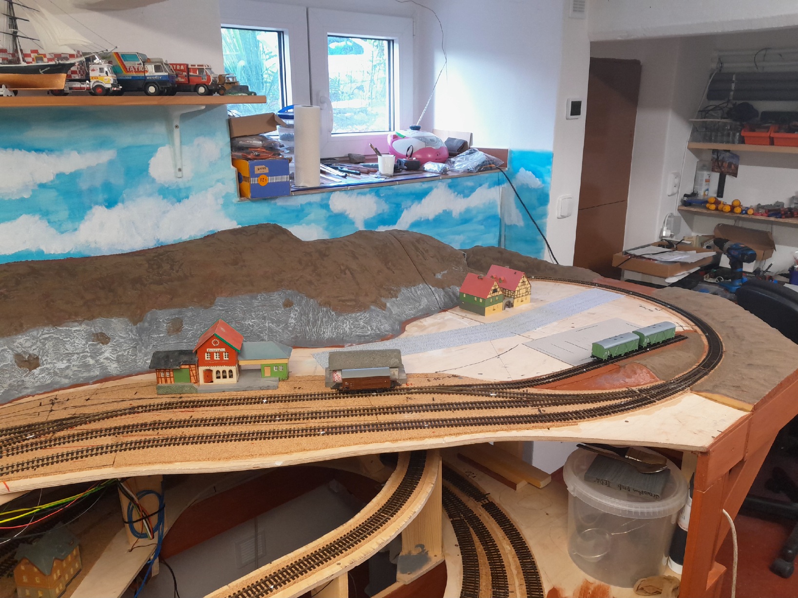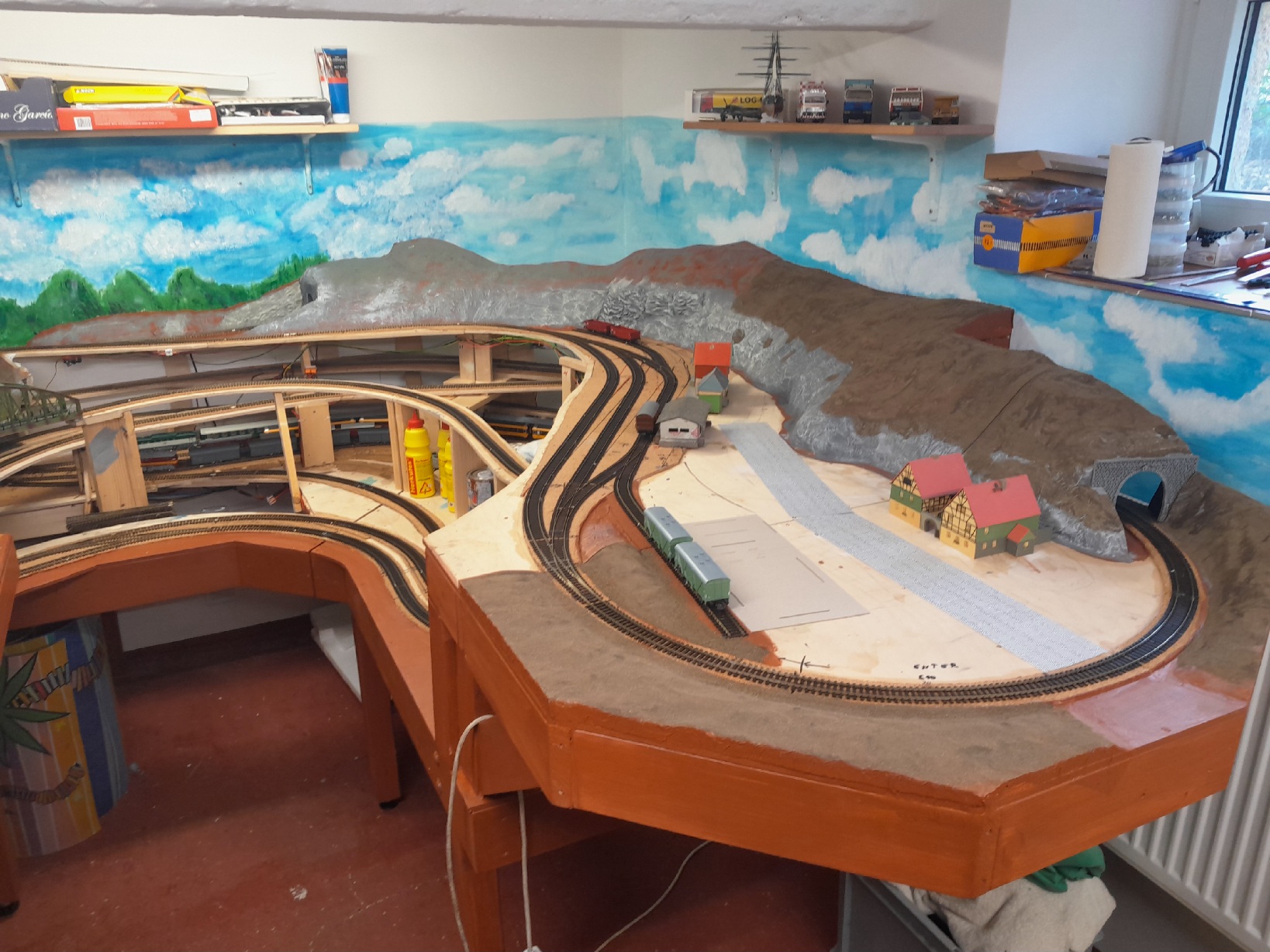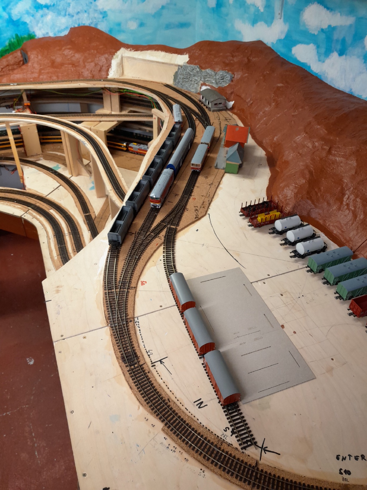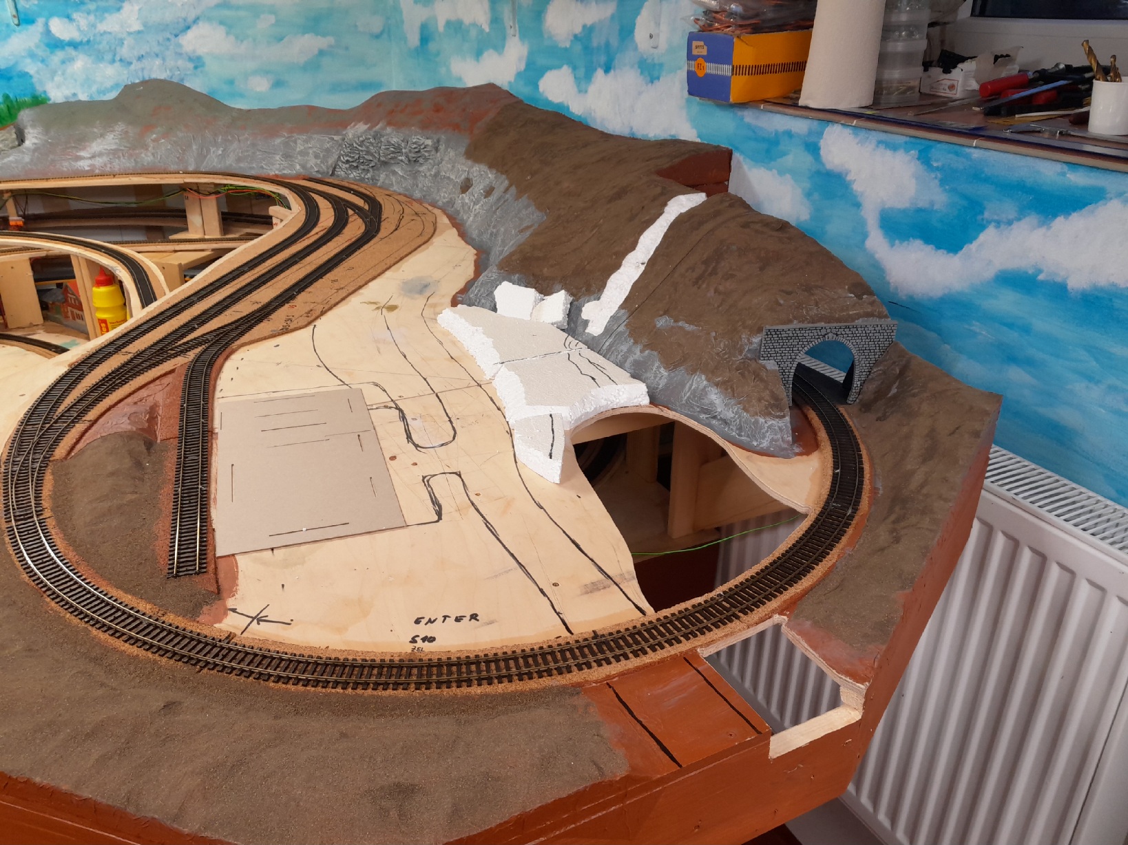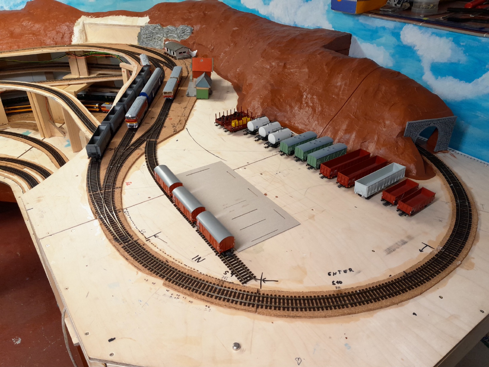 Zkus udělat údolí před portálem tunelu - potok tam bude křižovat trať, můžeš tam dát propustek a hned to bude i pestřejší. Nezapomeň to celé zaplácat stromy a keři, takováto údolíčka jsou dost džungle, jak je v nich vlhko. Jinak řečeno s klasikem - navrhujeme trať do krajiny, ne naopak![]()