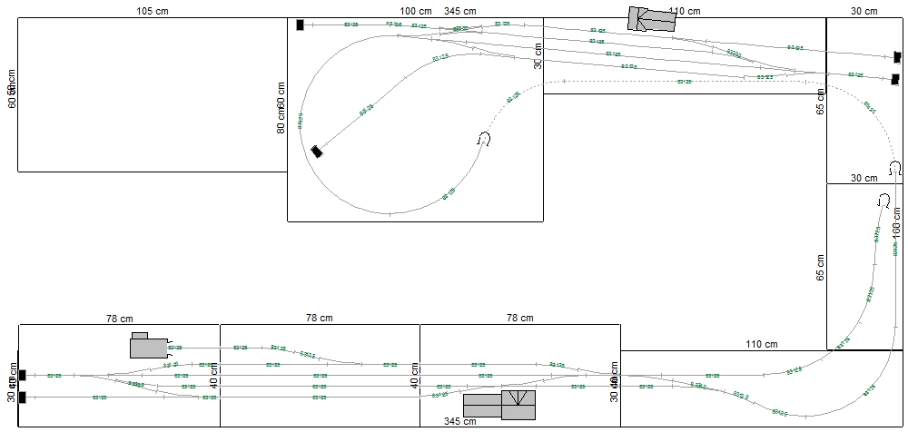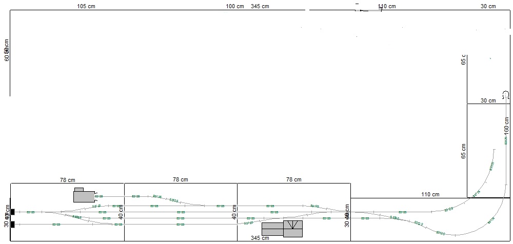 dobré rozhodnutí s modulovou stanicí. Jestli přemýšlíš o okruhu, rozhodně tím získáš potřebný prostor a zmizí ti to "nádorové" místo s vratnou smyčkou do které je podle mě nesmyslně vložen tunel, který zde bude naprosto nepřirozený. Moje rada je smazat vše co je nahoře v severní části a začít znovu dumat, jak by to šlo, kdyby jsi měl jeden spojovací díl u dveří odklápěcí (nemusí tam být přece nutně velký most). Může to být kus vyztužené překližky proti prohnutí, který při potřebě projít prostě zvedneš a zaaretuješ do polohy - průchod volný. Touhle úpravou zmizí ostré oblouky na celém kolejišti (ty co nezmizí se budou dát lépe schovat do tunelů :) ) a získáš opravdu reálnější návrh kolejiště i pro větší soupravy.