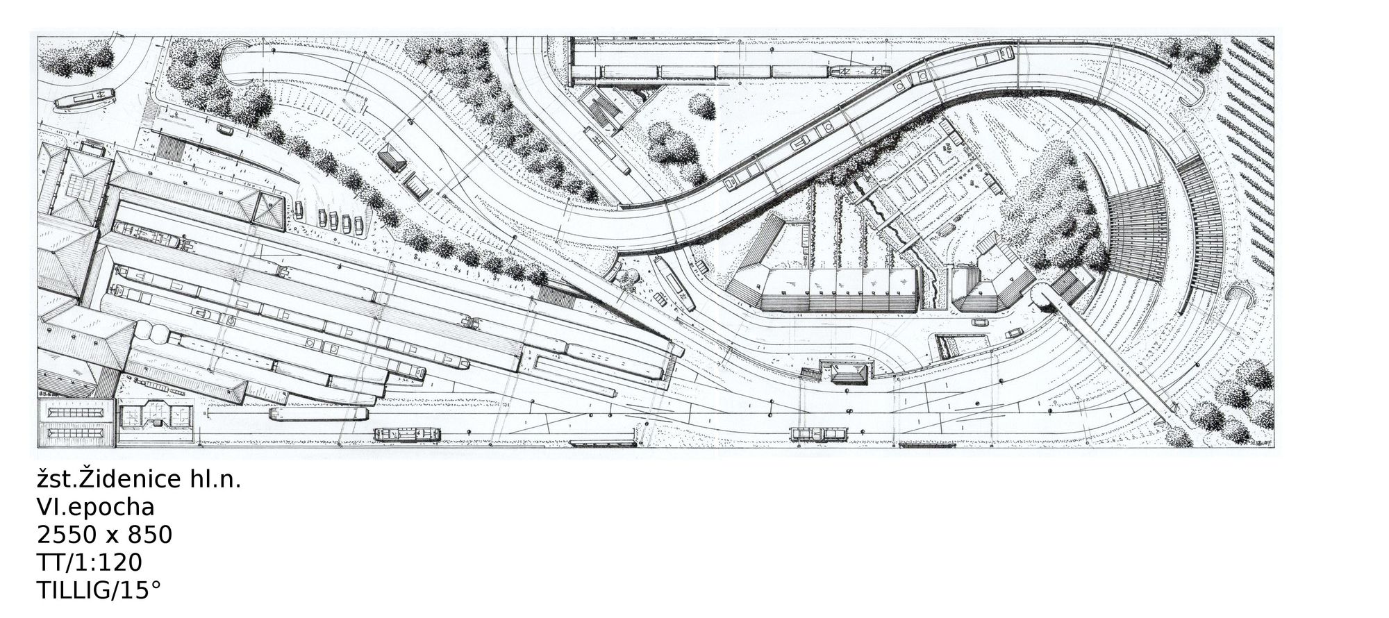 žst.Židenice hl.n. VI.epocha TT/1:120 2550 x 850 TILLIG/15°