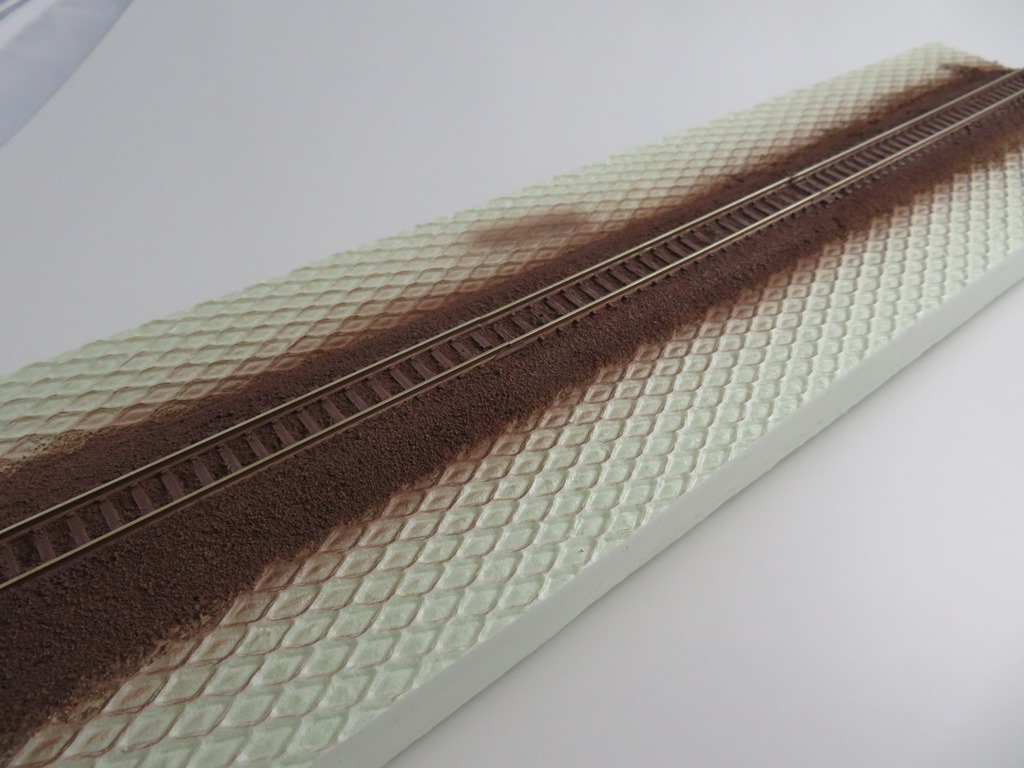 Tak jsem zaštěrkoval koleje s podložím i bez podloží a stříknul je Hubmrol 160. Nevypadá to myslím úplně blbě. Možná by to byla cesta. Co myslíte?