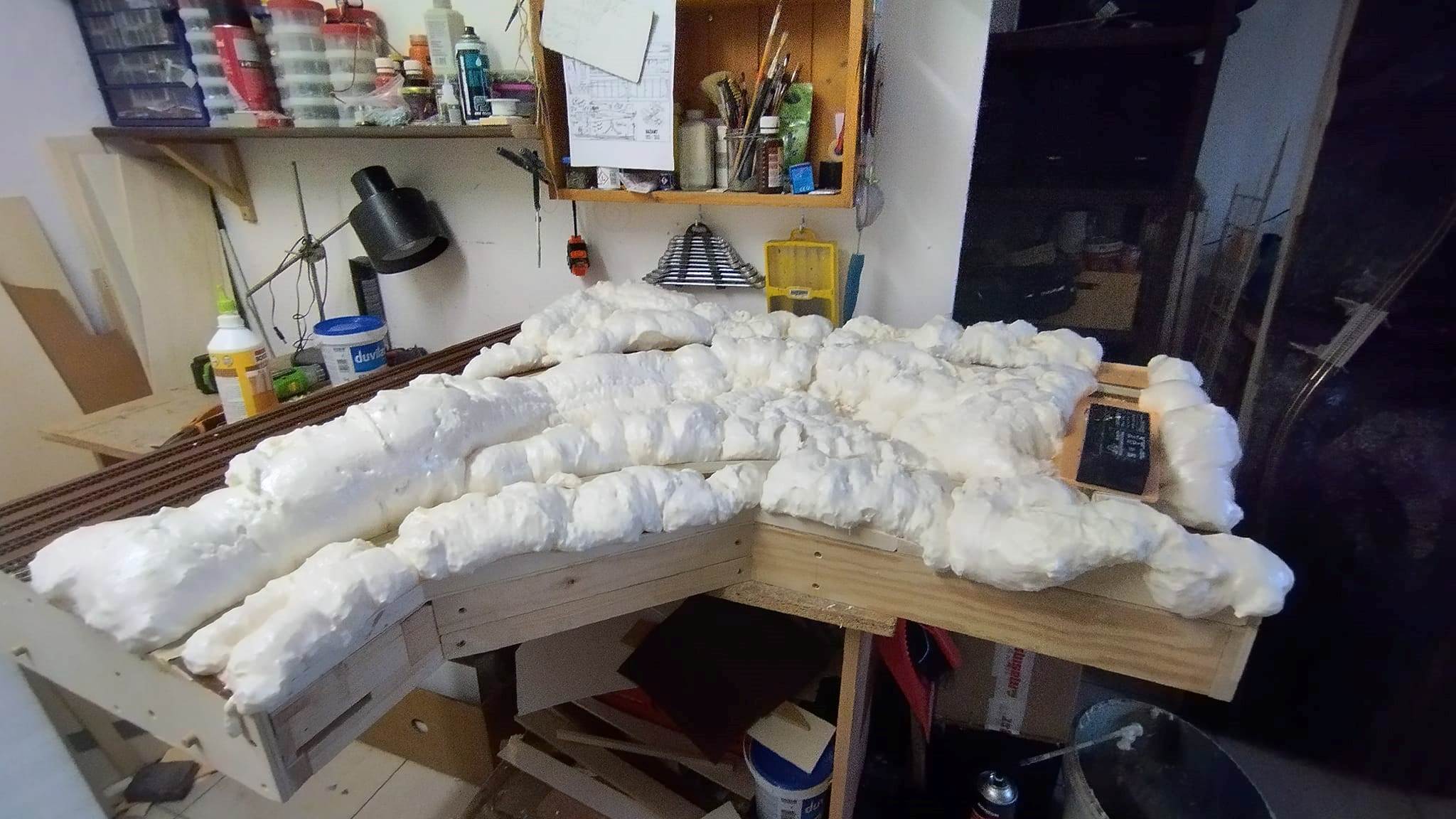 Práce na kolejišti pomalu pokračují. Propustek a betonový mostek přes potok jsou zatím jen polotovary. A jako svoji prvotinu jsem odlil již třetí sérii skal z forem od Woodland scenics. :wink: