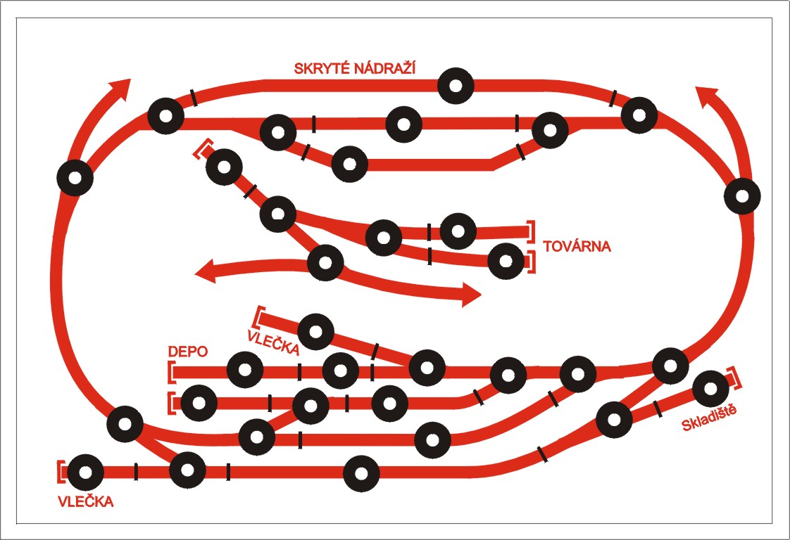Myšpulín píše:Hned za výhybkou bych tu kolej k remíze mírně odehnul od rovnoběžného směru, aby remíza byla kousek dál od 3. koleje od kraje.