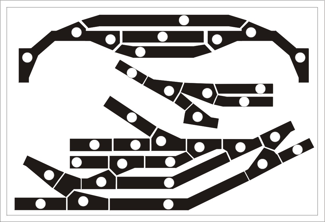 Tyto svorkovnice lze běžně koupit v různém počtu pólů a lze je i spojovat na rybinu do větších celků, takže si svorkovnici můžete udělat na míru. Dělají se pájitelné do plošáku. Pokud použijete ten předděrovaný, nemusíte se s ním pracně vyrábět. Stačí jen svorkovnici do plošáku zasunout a zespoda zapájet. Zespodu je výhodné vývody vést ke konektoru k ovládacímu panelu, pod šroubky pak dávat vedení stažená z kolejiště.