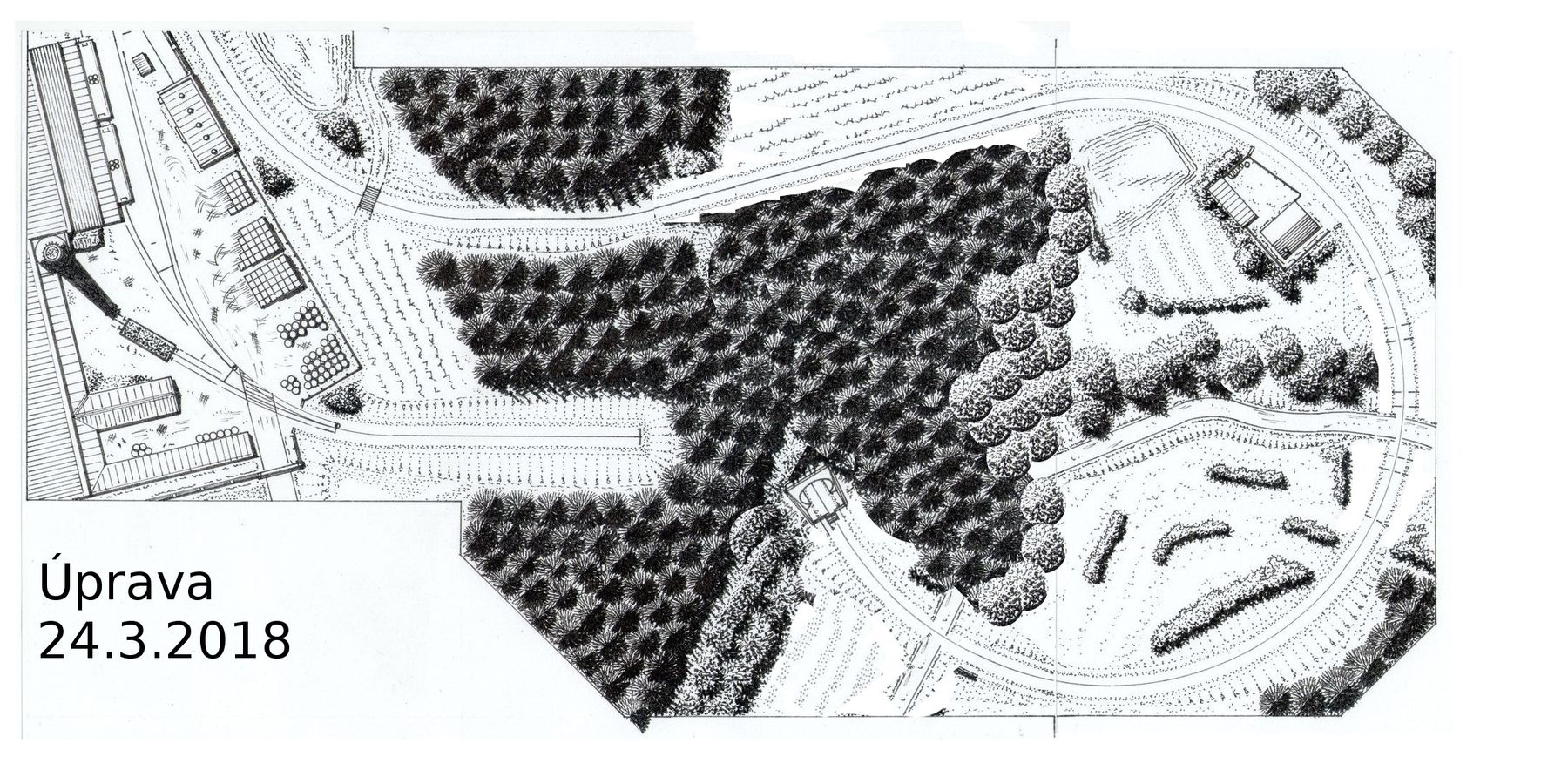 milan ferdián píše:Zde je počítačově upravený plánek výběžku kolejiště.Všechny viadukty jsou zrušeny.Polní cesta překračuje trať v úrovni přejezdů.