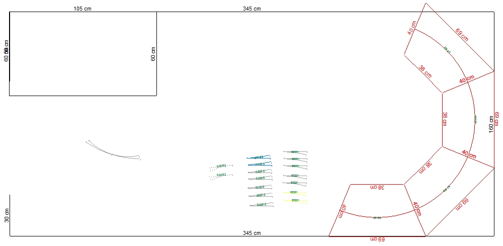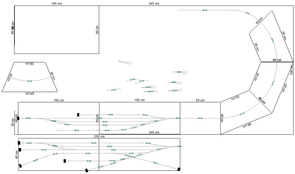 Pokud ti ten poloměr kolejí bez ohledu na obrys modulů do místnosti vejde, zkus to namalovat s oříznutím okraje dřeva krajních modulů, které už vychází do zdi. Pokud by se tento ořez vešel do obrysu upínacích otvorů v čelech modulu, je to proveditelné. Ty ořezy z technického hlediska na modulovém setkání být nemusí. Prostě by byl mezi dvěma moduly celkem ošklivý odskok v bočnici, což není úplně nestravitelné, nebo chybějící kousky můžeš udělat jako dodatečně přišroubovatelné a vozit je jen na setkání.