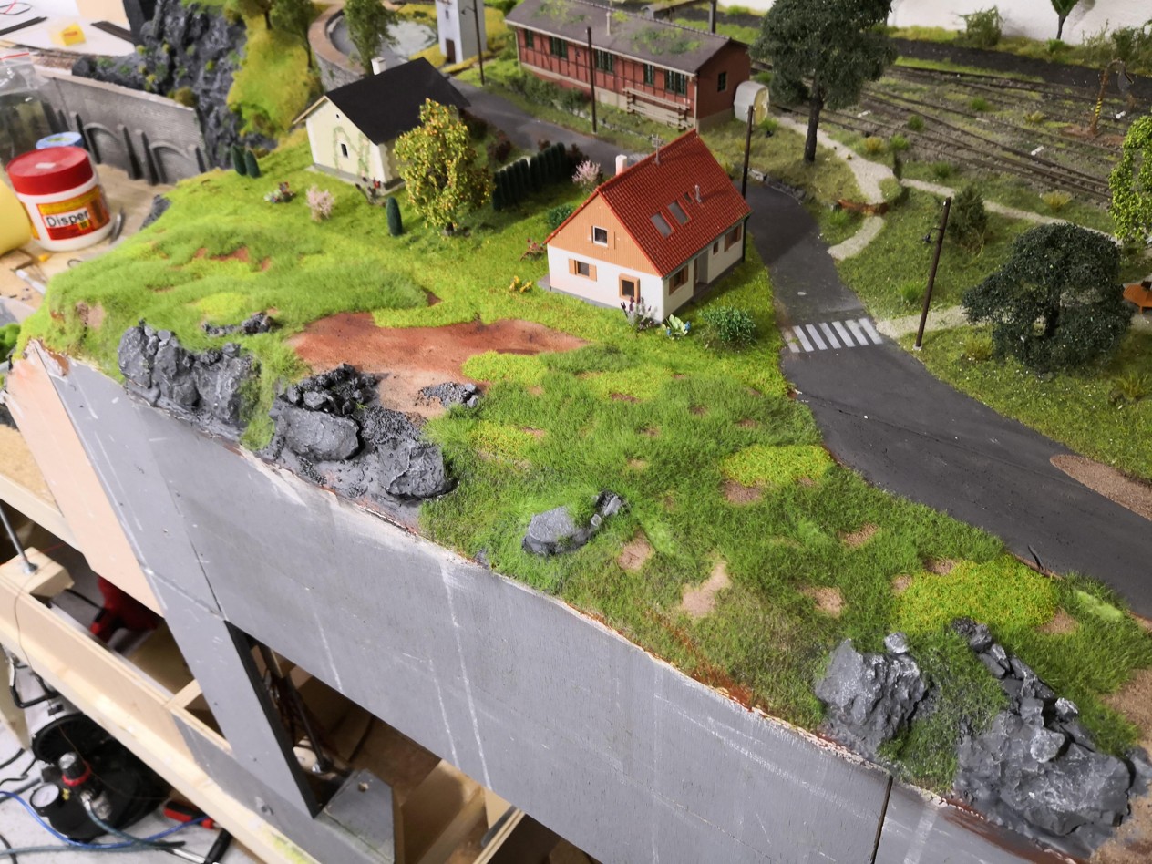Ohledně tvorby krajiny se mi zdá, že zbytečně kombinuješ dvě technologie. Buď bych dával sádru rovnou na předtvarované pletiva (letitá metoda), ale spíš bych purpěnu vytvarovanou překrýval jen papírovými ubrousky. Sádra je zbytečně těžká. Sám používám v některých případech pouze lepenkový skelet s krustou z papíru a vrchní ubrouskovou vrstvou.